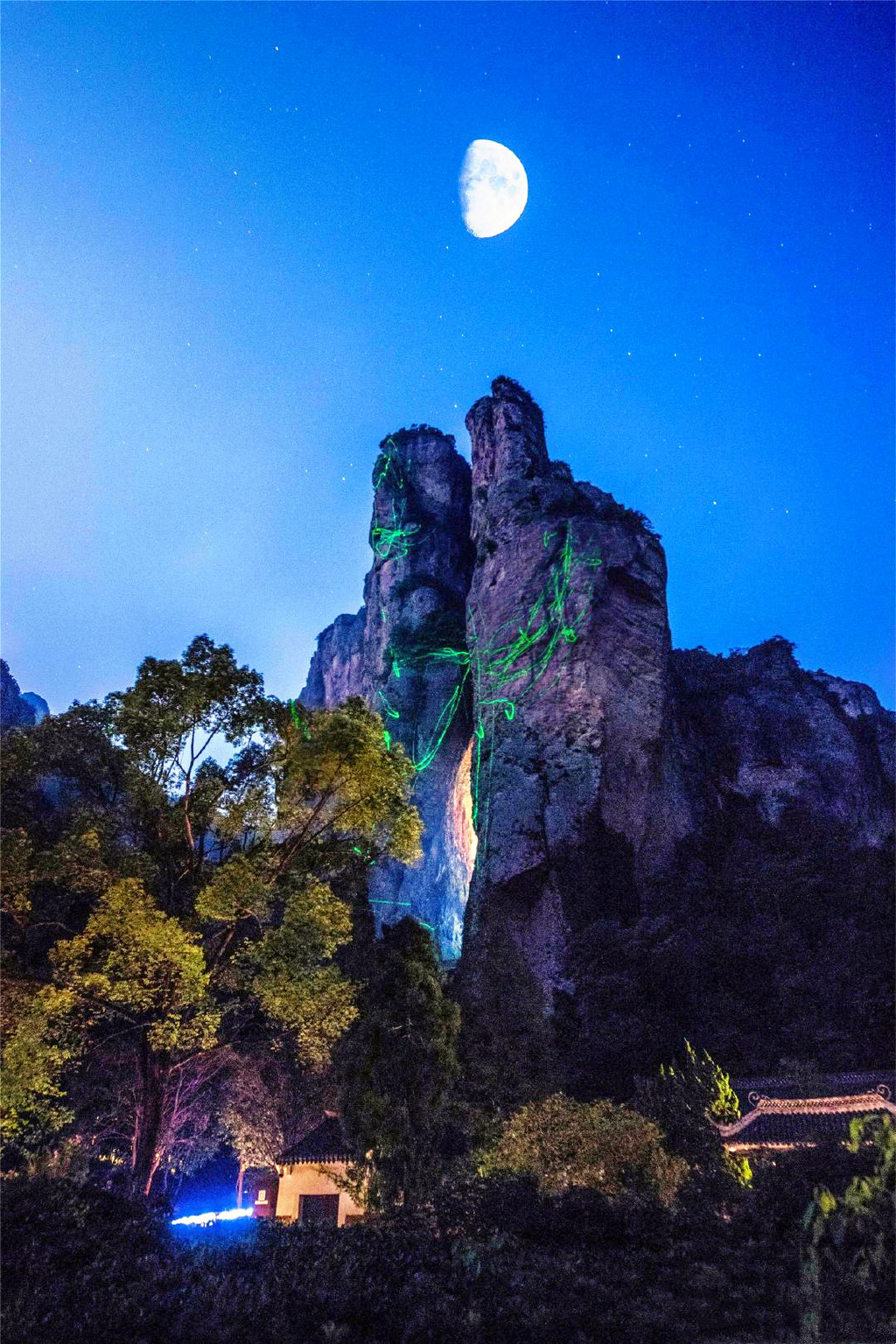 世人称颂的灵峰夜景,堪称雁荡山最妙处,夜幕之下,随着游客移步换形,座座奇峰千变万化,有如犀牛望月,有似展翅雄鹰,还有的像飞天的少女,让人觉得仿佛进入了一个洒脱自由、神秘温馨的唯美意境,因多年前已欣赏过,今夜还是好好休息吧!
