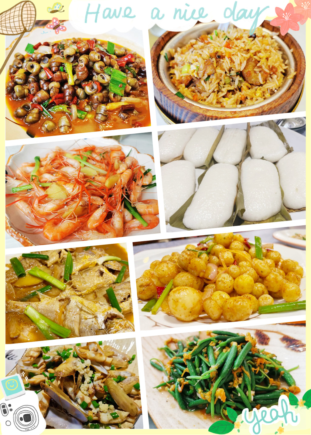 吸取昨日午餐的经验教训,今天在启程前往雁荡山的路上,便先电话联系了午餐餐馆——醉爱,醉爱就在响岭头村主路边,老板非常热情,保证午餐大厨到岗亲自操作,果然没有让我们失望,保持了一路美食的高水准,溪虾溪螺溪鱼自然是新鲜味美,椒盐小土豆酥脆香口,还有带鱼炒饭做法特别,香而不腻,当地的米发糕软糯香甜。