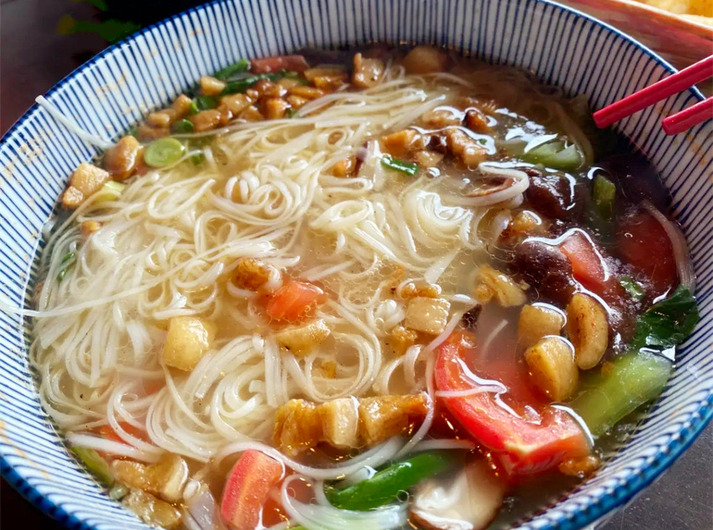 所有松阳旅行攻略中几乎都会提到,到松阳一定要尝一尝松阳老街“佰仙面馆”的水牵面,听说它还上过央视,所谓“一座城,一家人,一碗魂”,夫妻搭柴火灶做面,祖传秘方日卖千份火爆百年,历经四代人还在坚持柴灶煮面,手工制作的筋道水牵面,松软中带有嚼劲,面的口味只有大肠、大排、大肉、鸡蛋寥寥几种,特别是酒糟卤的大肠软糯干净,没有腥气,梅干菜煎蛋香酥可口,老板习惯于人来人往,手上不停忙活还和我们唠着家常,我们也帮着往土灶里添着柴火,当我们问起下一代是否有人接班,老人家长叹一声,说年轻人没人愿意做,估计未来有一天等老两口做不动了,这家人气面馆也就只能存活在回忆里了。