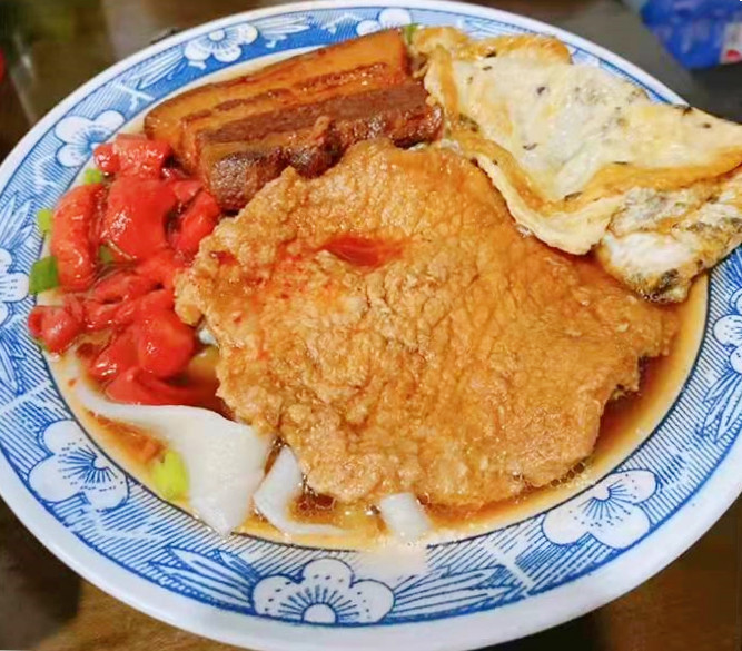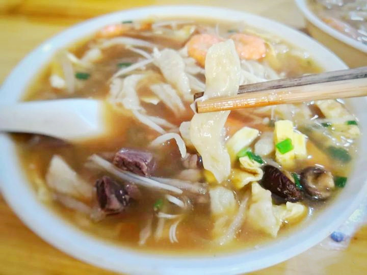 麦虾类似北方面疙瘩,状如弯曲大虾,因此得名,紫阳街上吃麦虾就去麦虾婆婆——紫阳牛肉麦虾,荣家小吃斜对面,海苔饼隔壁,老板娘即点即做,汤底鲜美,配上鲜虾、牛肉、蛋皮、牛肉、冬菇等新鲜食材,十五元童叟无欺,热腾腾一碗下去超满足,闲聊间问起婆婆(老板娘的妈妈),说是台风时受累中风,真是天灾无情,希望婆婆身体能慢慢好起来。