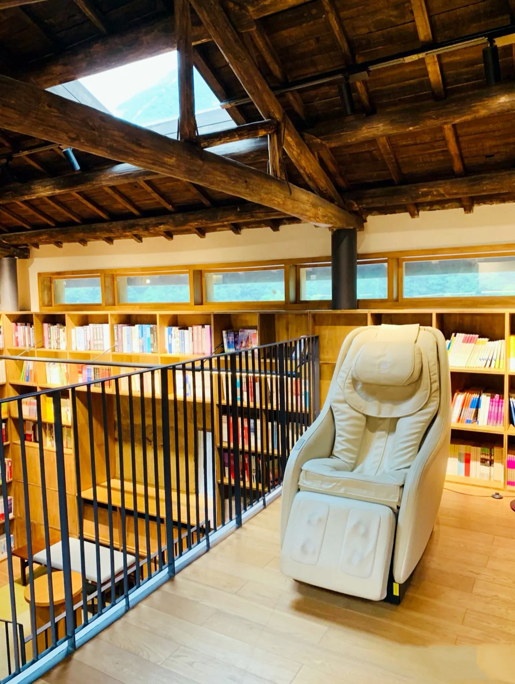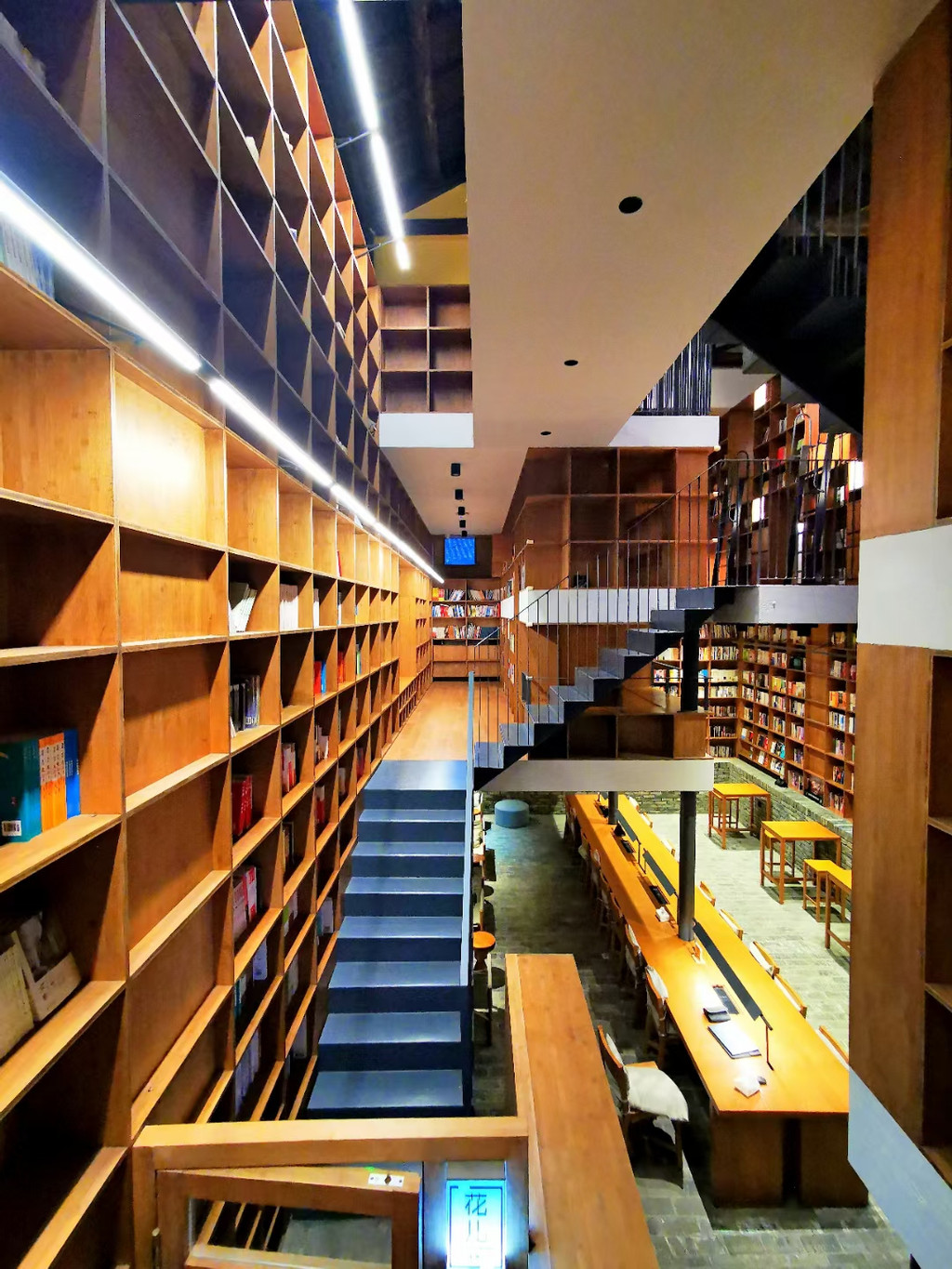 走进书店,格子书架向上一直延伸到天花板顶部,内部装饰简洁而舒适,环境非常静谧,寥寥几位客人也来去匆匆,最终只剩下我和朋友两人,静静泡在这样的氛围中,呆多久都不觉得够。正逢整点,店员邀请我们上二楼参观书店的秘密空间,20个胶囊房间就藏在楼中楼林立的书丛之中,错层的平台间通过看似纤薄但结构稳固的金属楼梯相连,犹如山中的蜿蜒幽径,每个胶囊房间都有专属的名字,这些名字就来源于书海,书中的一字一句正是这个小房间的灵魂所在,胶囊虽小,五脏俱全,舒适度虽比不了星级酒店,但一个人缱绻其中,却能奇妙地体会到婴儿时期的巨大安全感,房间被分为“花儿”与“少年”两个部分,分别对应女生和男生,中间由一个吊网链接,象征少男少女间理不清剪还乱的懵懂情愫,吊网看似柔软却非常结实,即便200斤重量人士也可安全轻松攀爬过去。