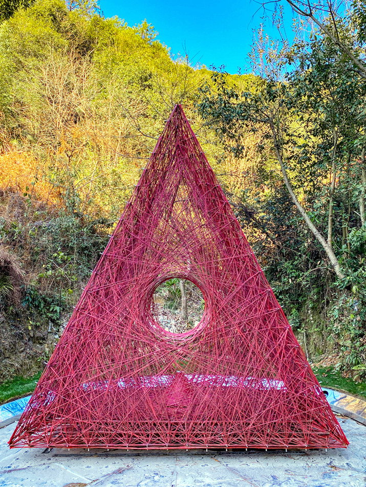 国内知名建筑师俞挺作品结缘堂,中国第一栋全碳纤维结构建筑,建筑主体由一根长达7200m绵延不断的碳纤维,耗时90小时,借助大界机器人一次编织成型,灵感来源于“朱丝萦社”,“爱情与婚姻”是这座建筑想要引起的思索,它就像是一团可以进入的火焰,碳纤维则是月老的红线。