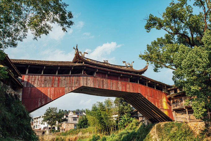 泰顺被誉为“ 中国廊桥之乡”,无论是历史价值、艺术价值还是科学价值,在中国桥梁史上都堪称一绝,现存古廊桥33座,15座古廊桥和“仕水碇步”被列为国家级文保单位,数量为全国之最,2009年“中国木拱廊桥传统营造技艺”被联合国教科文组织列入《急需保护的非物质文化遗产名录》,泰顺廊桥造型古朴,复杂多变的屋脊结构,飞扬流畅的线条,轻盈灵动的檐角,形成了别具一格的美。