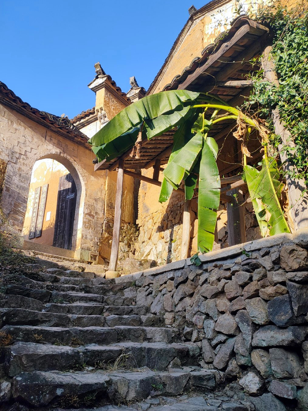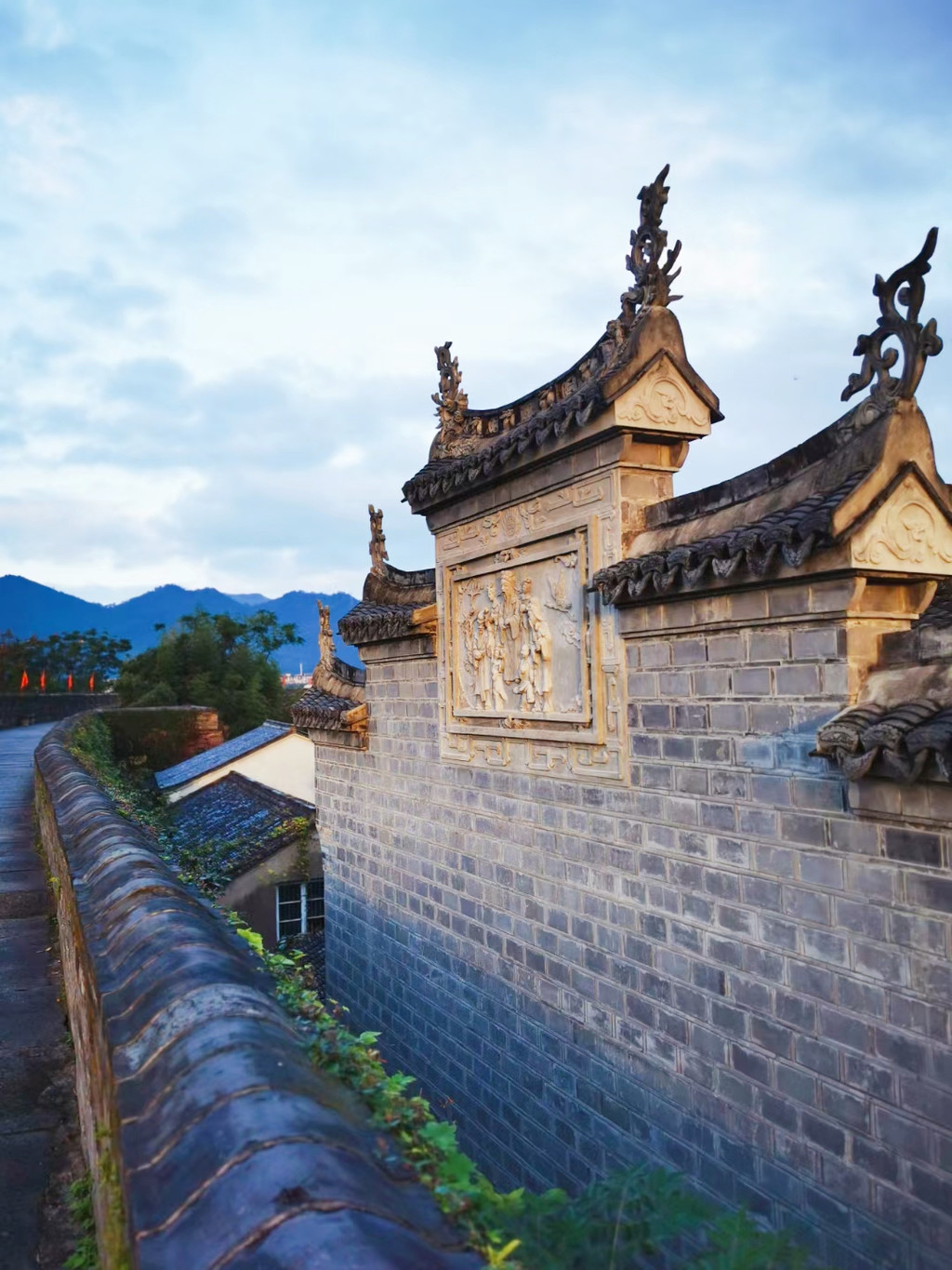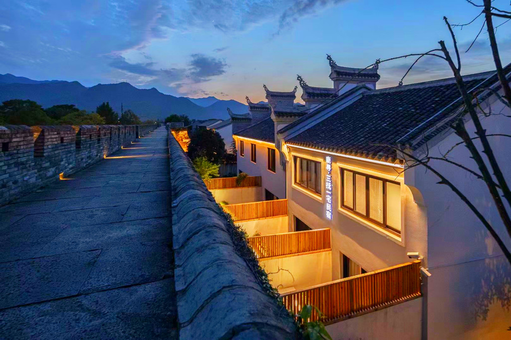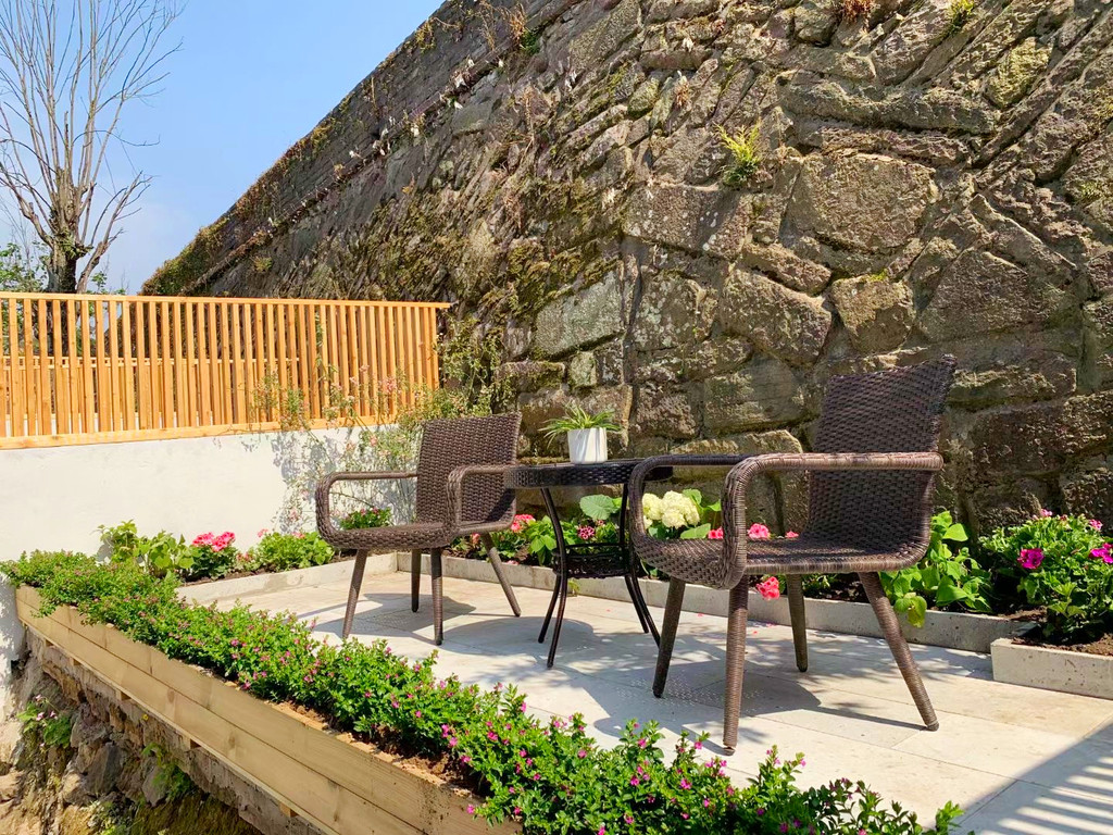 我们今天入住的三抚一宅民宿就在兴善门西侧古巷“三抚基”的深处,倚台州府城墙而建,临紫阳古街而居,静谧的城垣下,白墙黛瓦的江南小楼,装修古朴素净,墙垣上肆意生长的茂密藤蔓与青色的石板路相映成趣,别具匠心的庭院设计,沉淀着幽幽的古韵,让人走出房门就能触碰长城,感知历史,相传这里曾是临海人口中“父子四进士,一门三巡抚”的王氏家族生活过的地方。