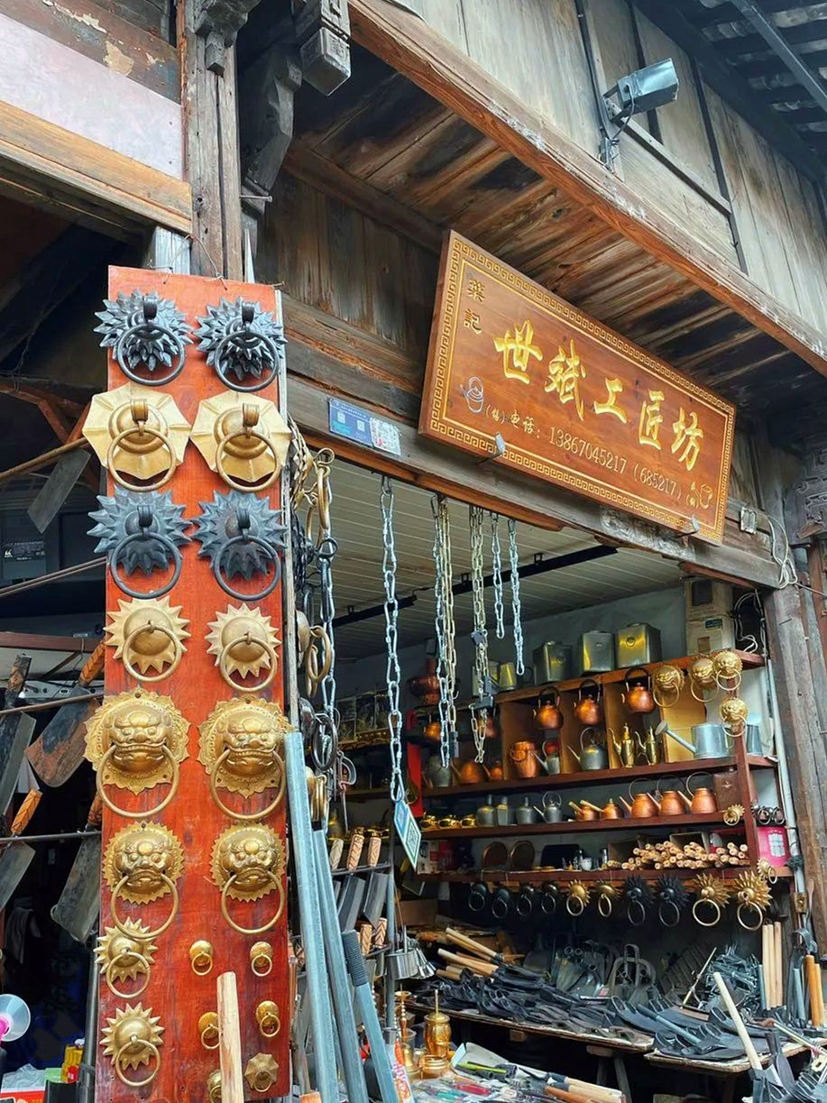 松阳老街又称南直街,至今依然保留着一百多栋明清时期的古民居,楼上生活,楼下经商,老街人把日子过得安逸从容,被誉为“活着的清明上河图”。走进松阳明清老街,狭长参差,许多近乎失传的传统手工作坊——火星四溅的打铁铺、药香四溢的草药铺、量体作衣的裁缝铺、制秤的、剃头的、弹棉花的、做棕板床的……仍在这里默默有序经营着,不少店铺门面上还挂有“田园松阳,非遗店铺”的匾牌,这些传承工艺的坚守者,依然烙印着古城往日的辉煌,时间或许唯独在这里放慢了脚步,随便走走就让人有一种恍如隔世之感,生怕惊扰了这里的千年时光。