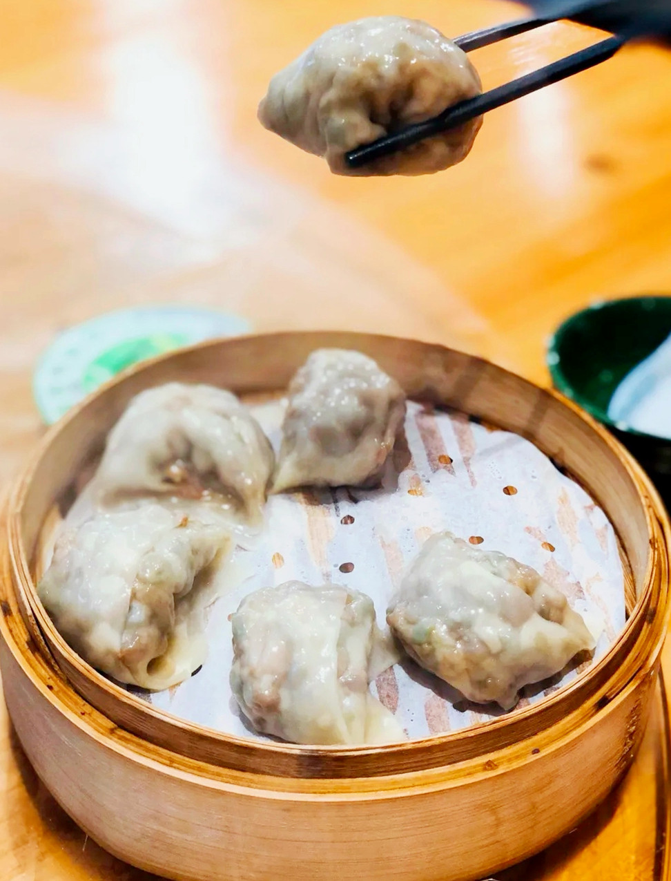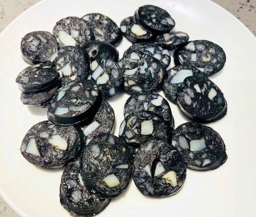 扁食,台州本地叫法,看起来就是馄饨,豇豆、香干、猪肉、茭白等切丁炒熟,然后包进面皮中,形似元宝,荣家小吃的扁食皮薄馅大,皮面筋滑,馅心鲜嫩,还有蒜香Q弹的目鱼香肠。
