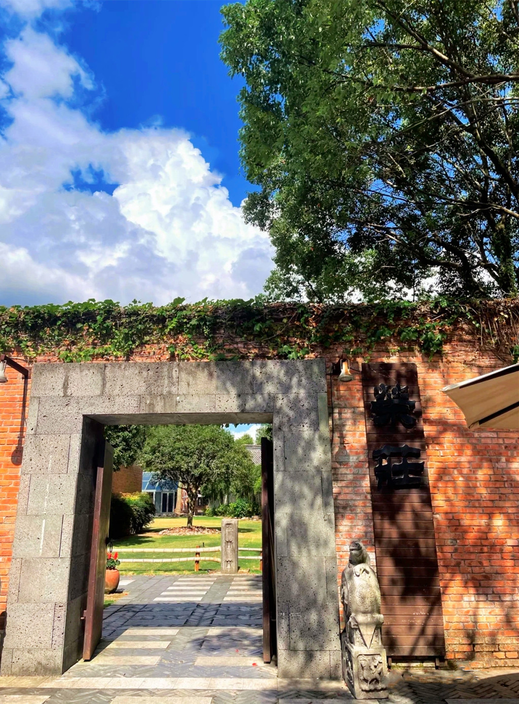 从雁荡山出发,我们直奔荣庄,典型的庄园式餐厅,游走可观绿意,闲坐可闻鸟语,不靠近主城区,门口是两列石墩红砖木门,入门是平铺青葱的草坪,低调的私家江南庭院,当地很多新人热衷于在此举办婚宴。