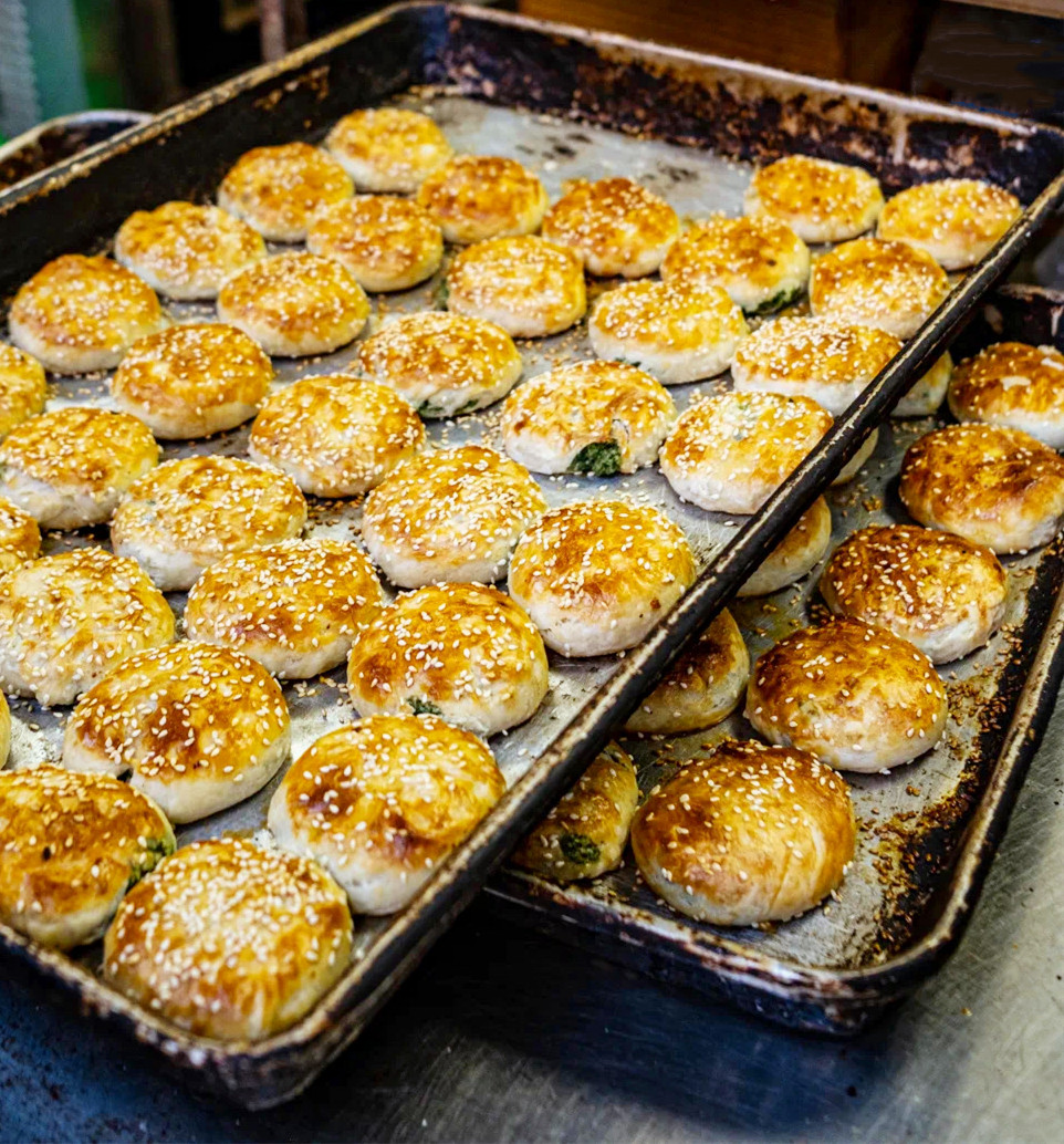 临海麦饼是一个系列的,有蛋肉麦饼、猪肉麦饼、洋芋头麦饼、冷饭腌菜麦饼、砂糖麦饼等,金黄润亮,油香沁鼻,口感软糯,内馅丰富,反正你能想到的东西基本都能放进去。
