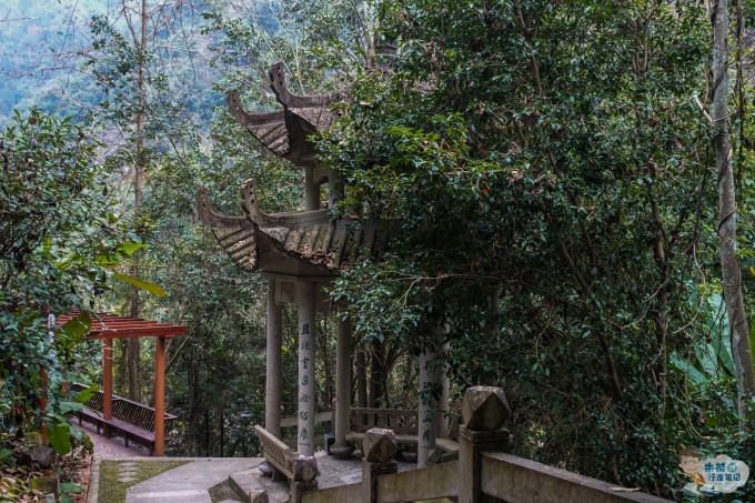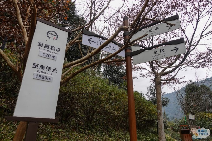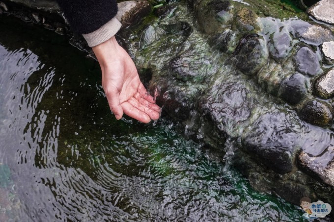 沿着幽静的绿道向着山谷深处一路前行,远处苍崖凌空仞立,脚下山溪蜿蜒婀娜,身旁植被浓郁、风景独好。当你看见前方路中央那写有“天下名泉”的高大牌坊,则预示着泉眼快要到了。顺阶而下只见潺潺的溪水旁边,一眼冒着热气的水潭,有清澈的热水涌出,大大的“泉眼”二字昭示着这里就是“天下名泉”的发源地。