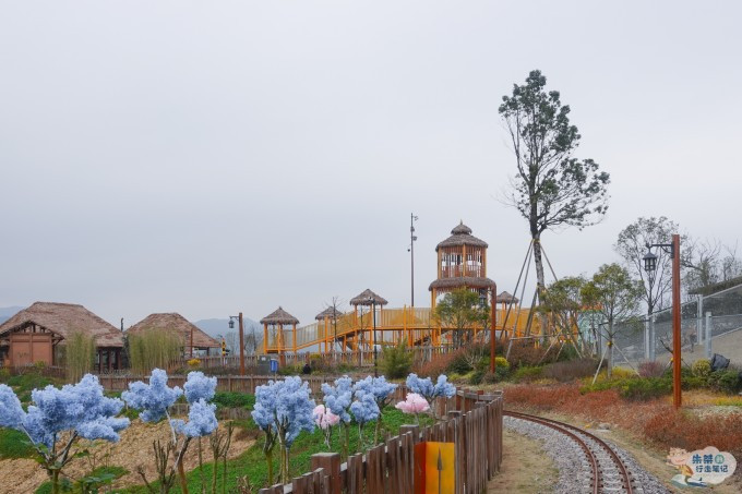 加之四周青山逶迤,园内花木丛生,以及点缀其间的五彩斑斓的游乐设施,光是看一眼都让人觉得心旷神怡。不过既然被称之为“火车乐园”,那最值得打卡的当然是那串联整个项目的观光小火车啦。