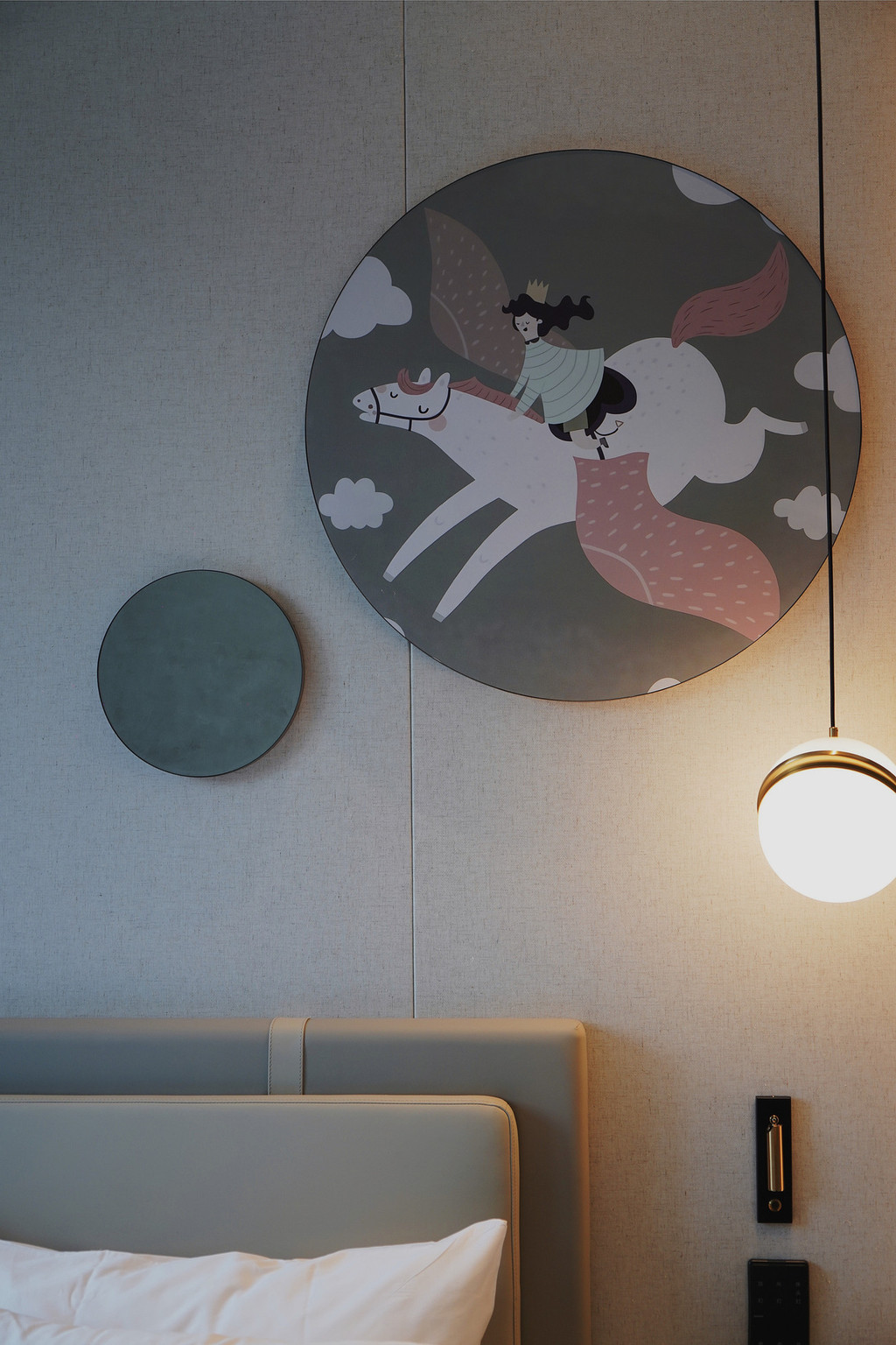 300多间不同规格的房型,从布局到细节,都蕴藏着浓浓的艺术气息,其中还有专为亲子度假打造的儿童房,房间风格以森林、沙漠、星空为主题,布局童趣满满。