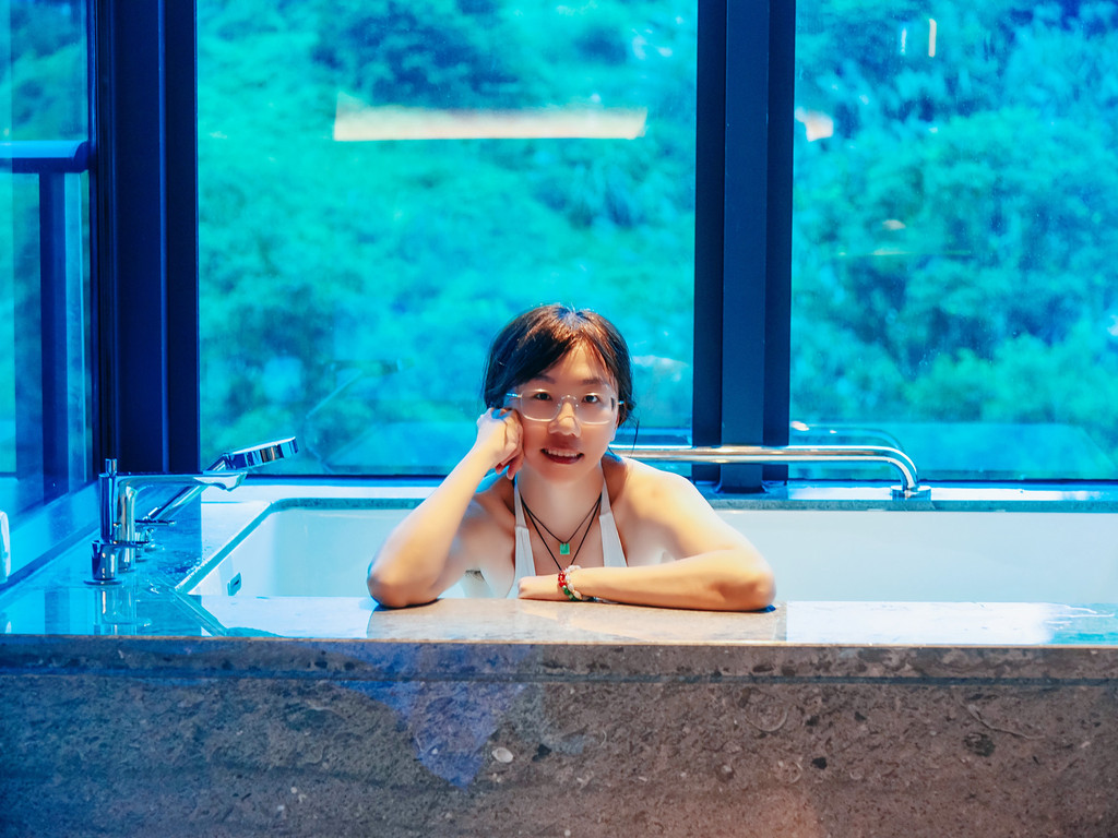 入住的特大房房型面积达35平方米,电动窗帘打开后可以看到绝美山景。更加惊喜的是房间内的阳台景观泡池,可以边泡温泉边观景,也太浪漫了吧!而且在房间内泡更加私密,随时想泡就泡,晚上泡完温泉好睡觉哦。