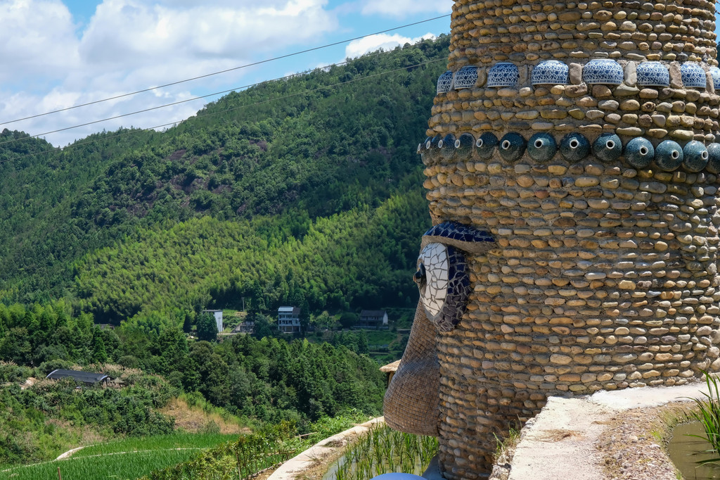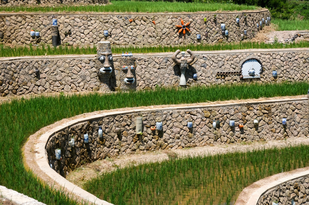 这里还有个非常值得已有的地方叫做上古田园,是一个旱改田的地方,占地约65亩,以山海经为主题的美丽田园。