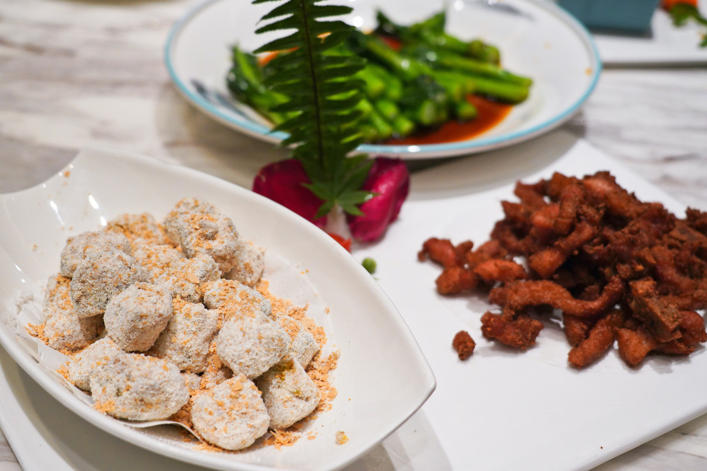 快乐的度假生活,先从味蕾的满足开始。品味了一餐泰顺当地独有的饕餮美味经典的干炒牛河、忘忧草海盐黑虎虾、太泰顺本地红烧肉(用酒糟烧制)、酥排佐麦香板栗南瓜、美点双辉等菜肴。每一道菜品摆设都尤为精致,口感甚佳。