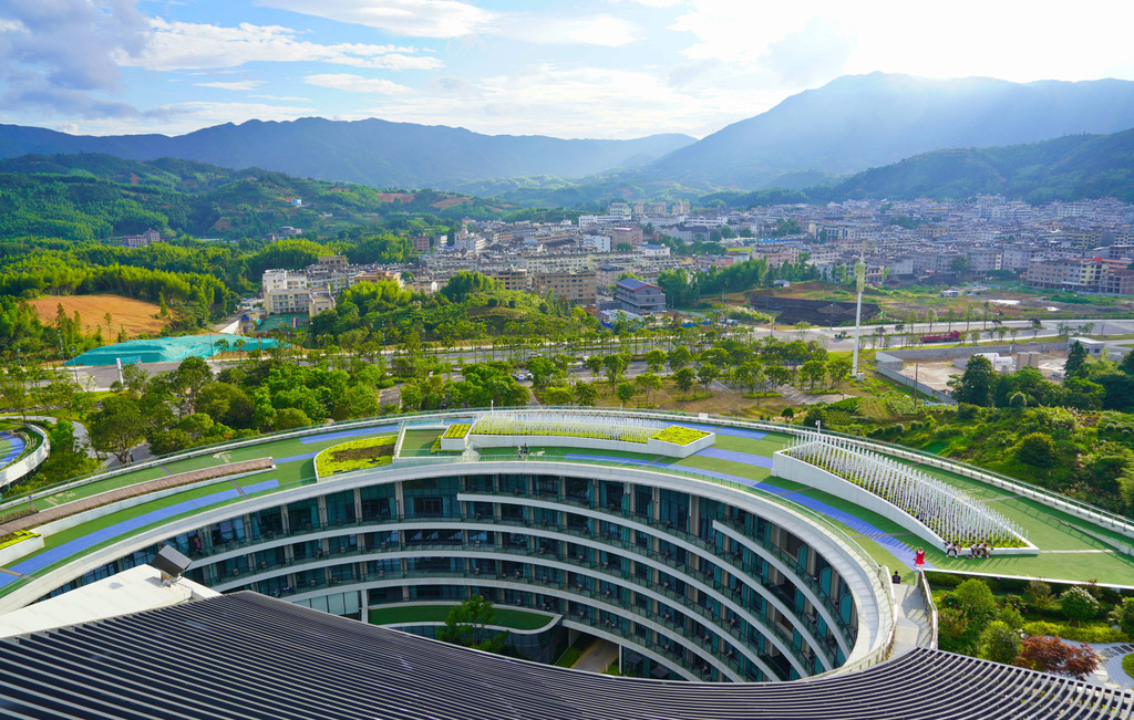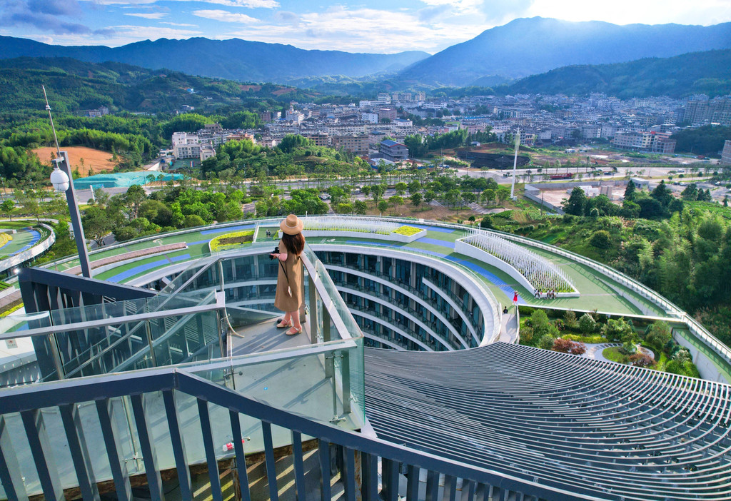 浙江泰顺境内藏着一处绝妙的度假酒店。既能行走于“天空之城”般的屋顶草坪步道,还能在房间泡私汤。这就是泰顺亿联开元名都大酒店 ,一家拥有“天下第一氡”的温泉酒店,躺在房间就能泡温泉。这家酒店的外观以“蛟龙出海”的理念主,造就环形的酒店主楼,造型极富美感。酒店顶楼有500米长的网红星光大道,形如蛟龙出海蜿蜒盘旋,奇妙无穷。在酒店顶楼的星光大道,还能邂逅浪漫的日出、日落。