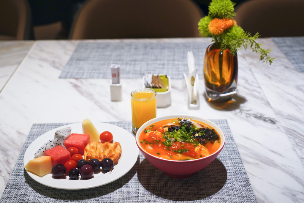 都说舒适的住宿是旅行中很重要的部分,而在星级酒店中一餐美味的早餐,同样占据着假日体验中重要的部分。泰顺亿联开元名都大酒店的早餐,中式与西式兼顾,品种多样,营养丰富,膳食均衡,可以选择小米粥与咸菜,也可以选择猪脚粉、番茄鸡蛋粉,或是西式的面包沙拉等。