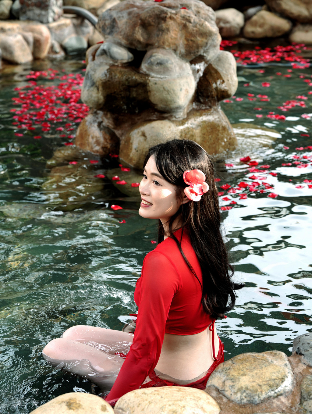 度假村的户外露天温泉浴场更让客人们直接投入大自然的怀抱,尽情享受大自然的无私馈赠。大小汤池可以随意选择,温度不同,功能也不相同,游客可以根据自己心愿选择最适合自己的汤池尽兴享用。我选择了菊花汤池和红酒汤池,最好玩的是鱼疗池,小鱼们围着脚咬得痒痒的,快乐极了。