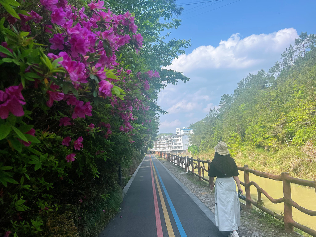 九曲溪被誉为泰顺的小九寨,这里一年四季鲜花盛开,与暮光之城和泰顺廊桥文化园相接,看完廊桥逛逛九曲溪,一路风光旖旎,下午薄薄的阳光洒落在九曲溪上,隽永的春光在幽静的光影中流散。