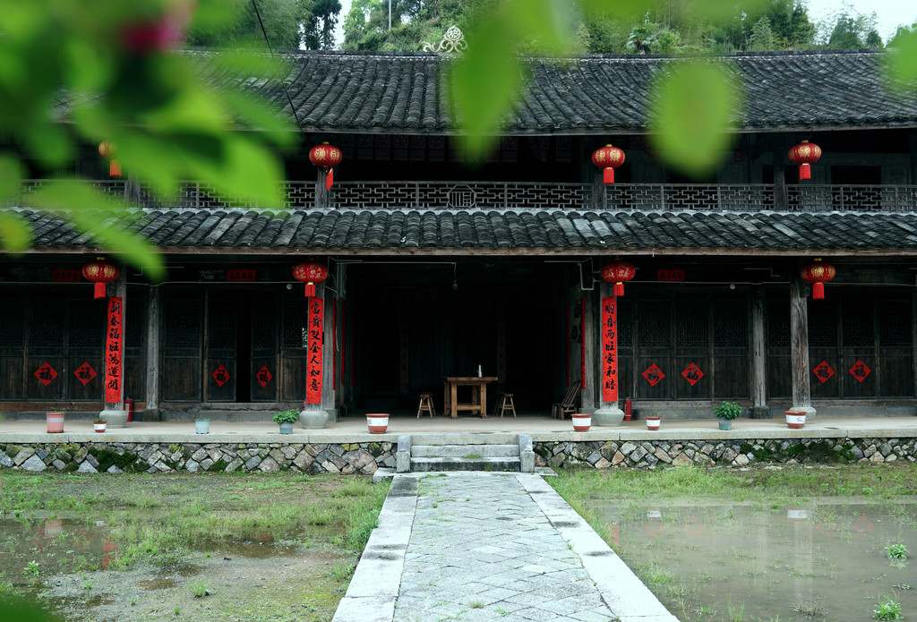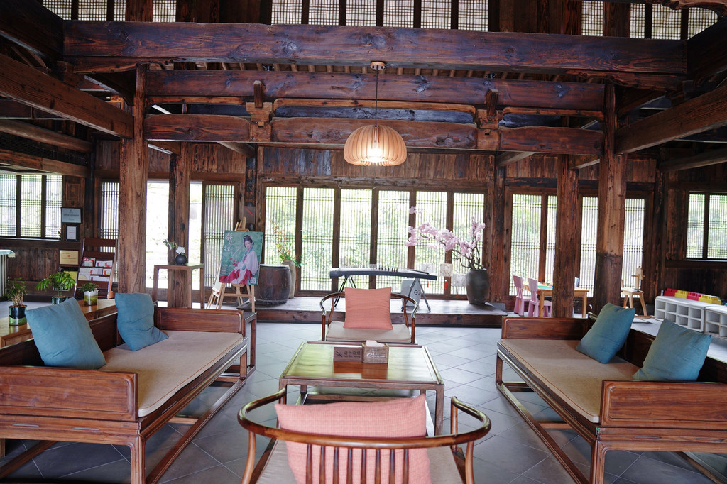 在这些建筑群中,历史最悠久的是下厝,也是季氏始祖在这里建造的第一套住房,具有浓郁的明代风格。和一般建筑不同的是,下厝的门楼采用了“歪门正厅”””的法式。现在这里建成了下厝民宿,大堂即是用餐区域,还是汇聚茶道、花道、书法、古筝以及汉服体验等艺术形式的公共娱乐场所。这里门窗布景皆入画,特别适合拍照。在这里喝茶聊天,观景泡汤,夜晚看星星都是不错的选择。