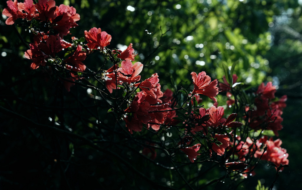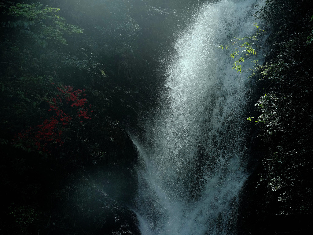 今天我们计划两个小时徒步九里潭,九里潭位于浙江温州泰顺泗溪镇白柯湾西面峡谷。适逢春末,加之昨夜的一场暴雨,群山葱茏朗润。沿着九峰溪溯溪而上,清溪曲折蜿蜒、瀑布激流飞下、吊桥快乐摇荡,幽潭随处可见。山谷间毛竹丛生,阳光穿梭挺拔的竹林缝隙,有种幽远深然的美丽。溪水穿越竹林清音激越,犹如万马奔腾。清风拂过山林,映山红开满悬崖,银瀑白练飞泻,晶莹剔透的水帘,轻灵飘逸地舞动,将流光抛散,清凉的水雾清淡落上脸颊,就让我此时做一个安然自处的闲人,拥有吐纳河山的清醒与旷达。站在九里潭高处,薄薄的阳光下,山花的幽香静静飘来,隽永的春天在时光中弥漫,繁花开在寂寞的枝头,高旷出世,冷艳清绝。
