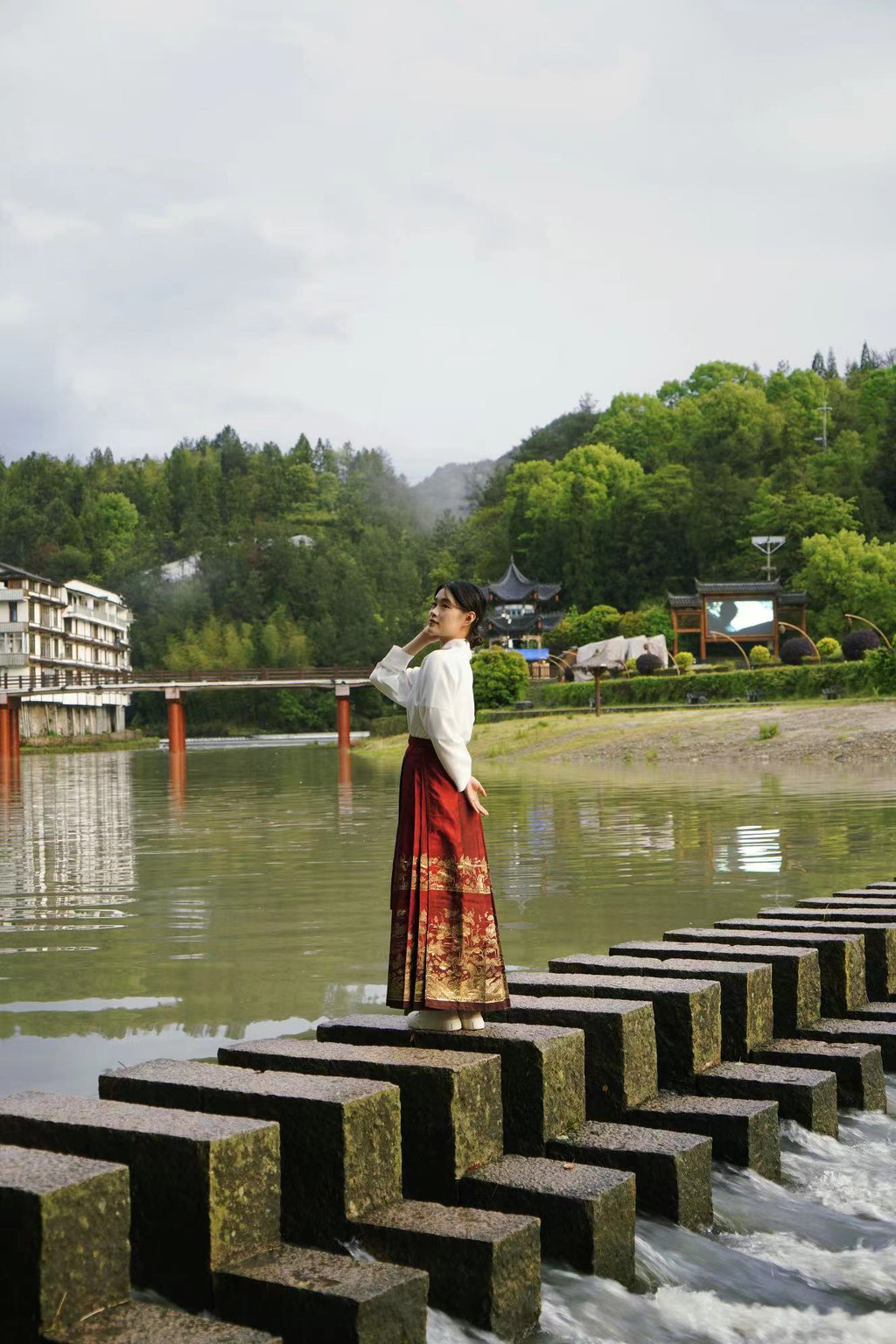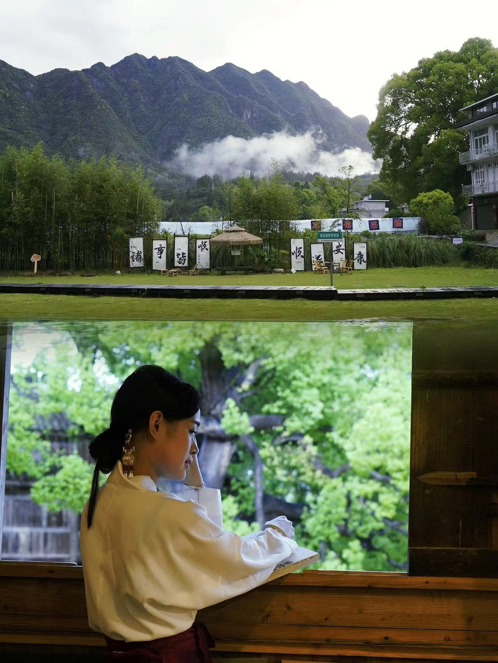 细雨中,漫步于廊桥文化园,从溪东桥缓行至北涧桥,每一步都踏着悠长的古韵,沉浸在别致的意境之美中。走累了,不妨在西桥头的《情爱廊桥》茶馆稍作停留,品一杯香茗,透过窗棂,凝望那千年古树、碇步桥和自然风光的和谐交织,让心灵在旅途中得以片刻的宁静与放松。