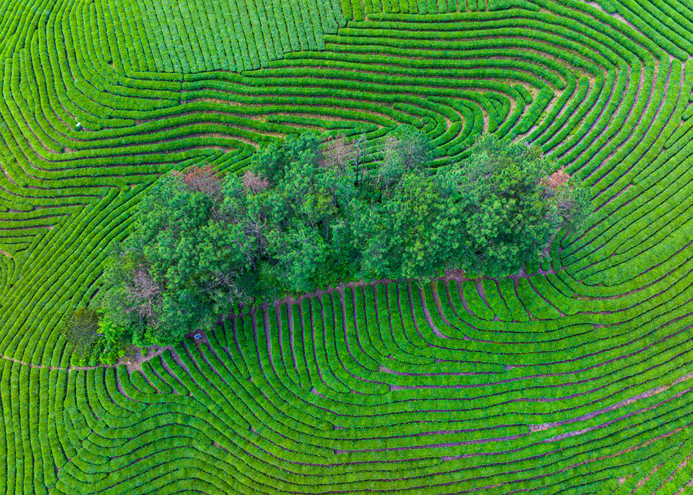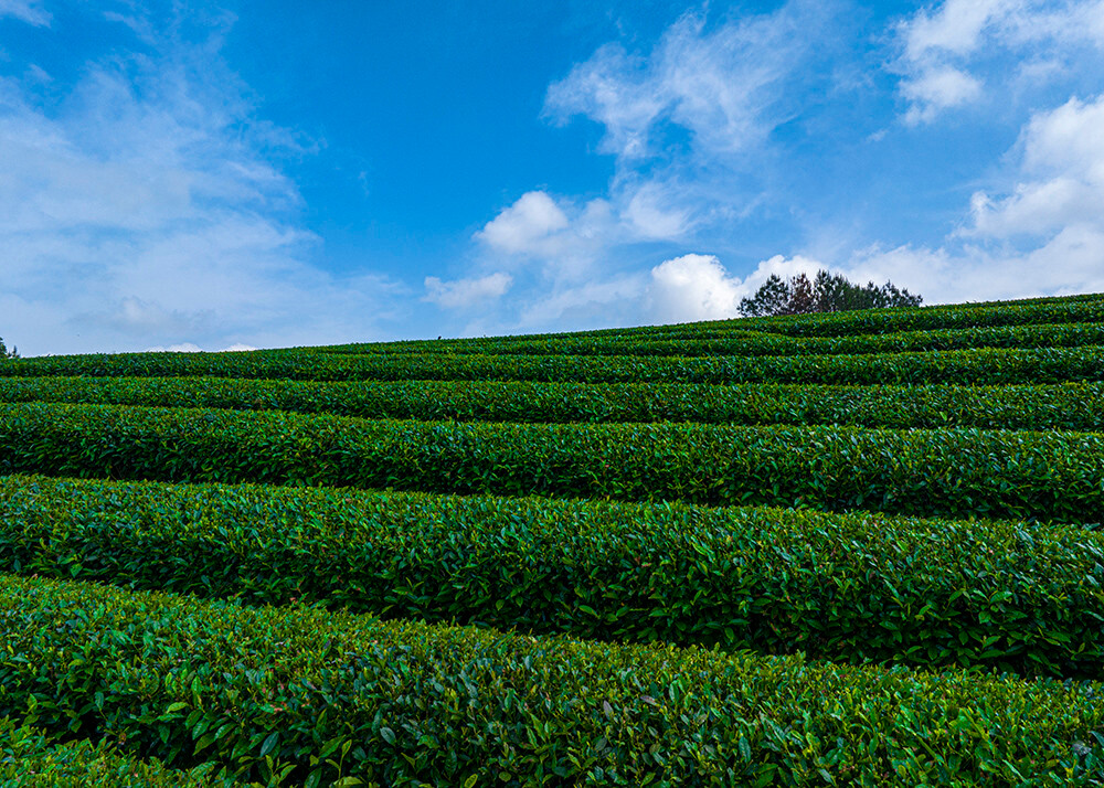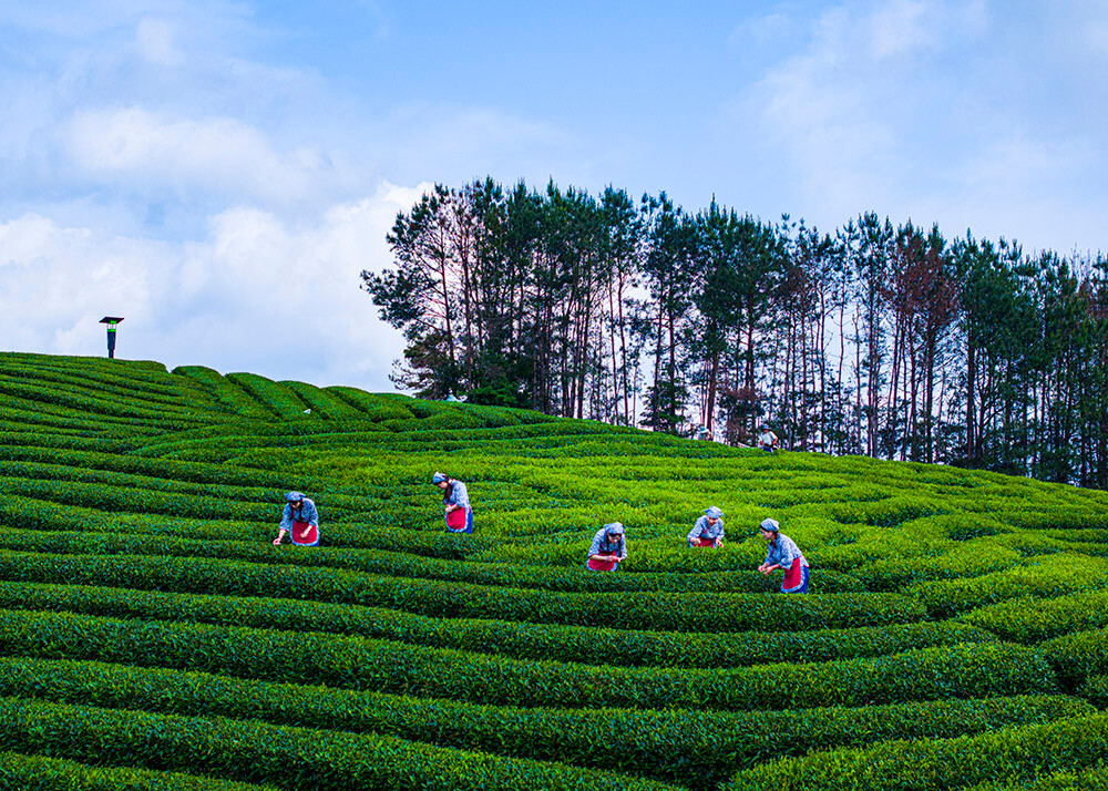 天外飞仙妙探春, 金篮逸挎采山珍。错过了阳春三月的万物初开,但可在初夏时节的凤垟欣赏到满绿的茶园风光。