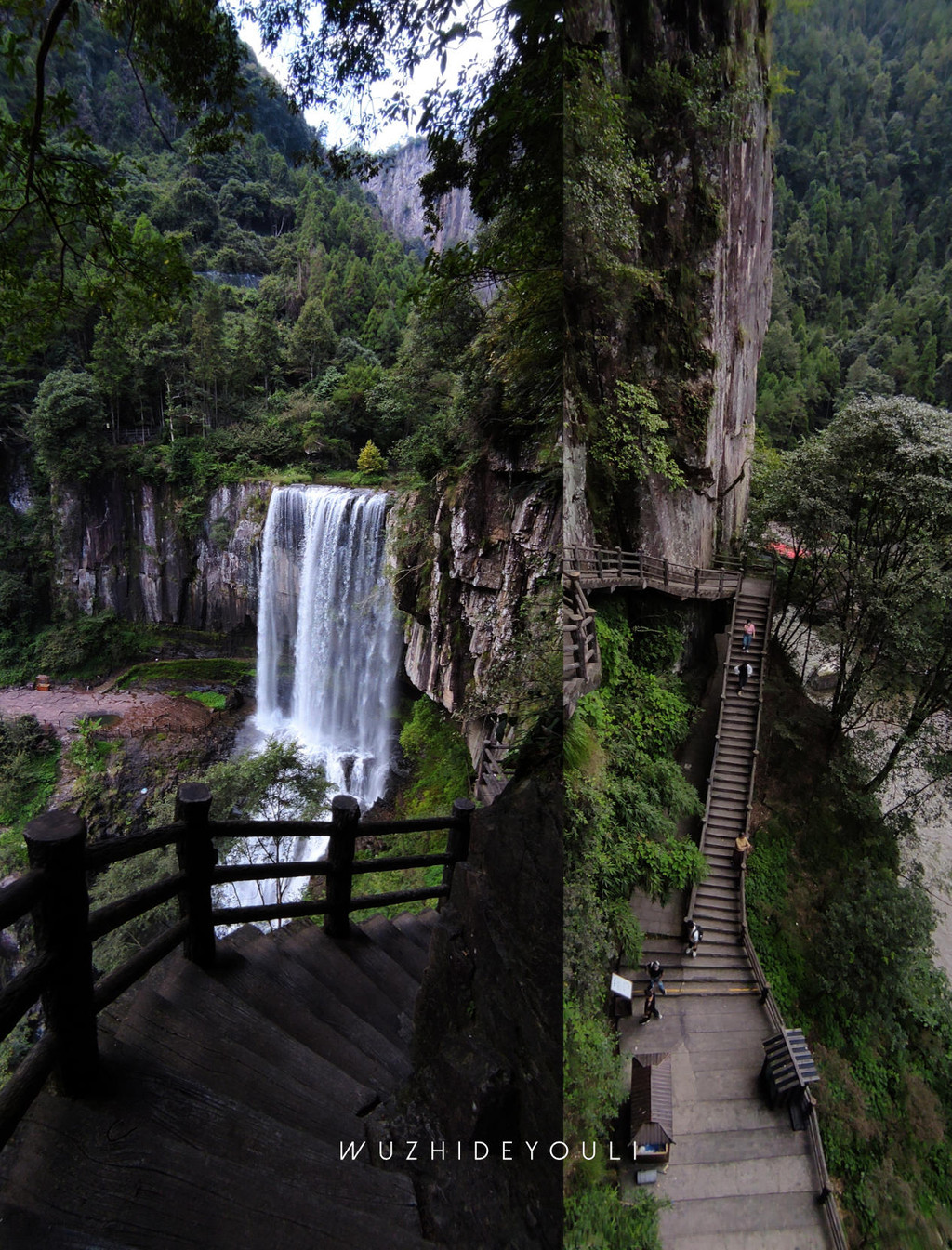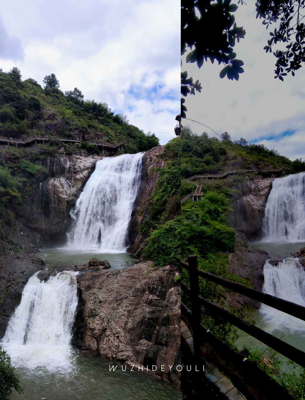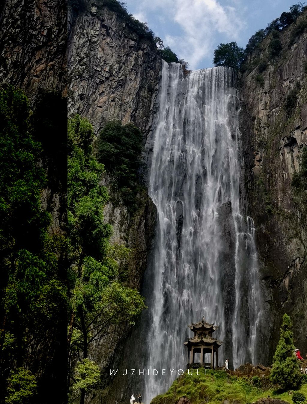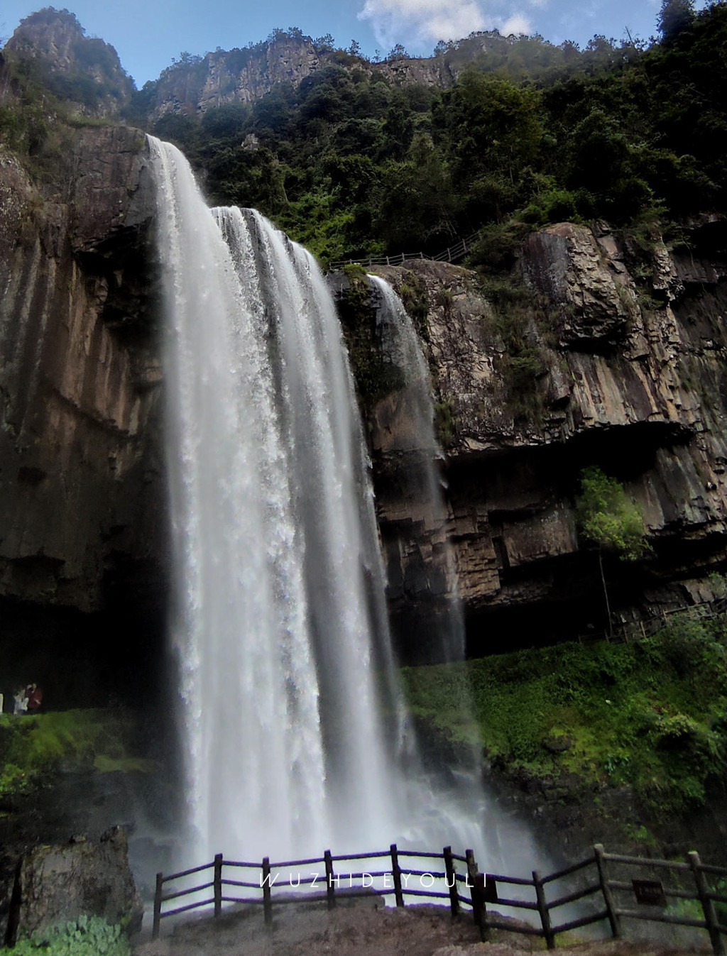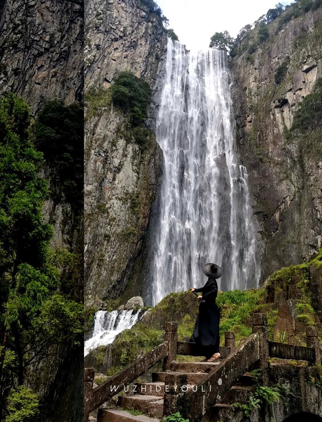 百丈二漈:中成水帘洞,瀑分上下水,可从瀑布后面穿越,感受独特的奇幻体验,从水帘洞出来,站在栏杆边,以瀑布为背景拍照,氛围感直接拉满。
