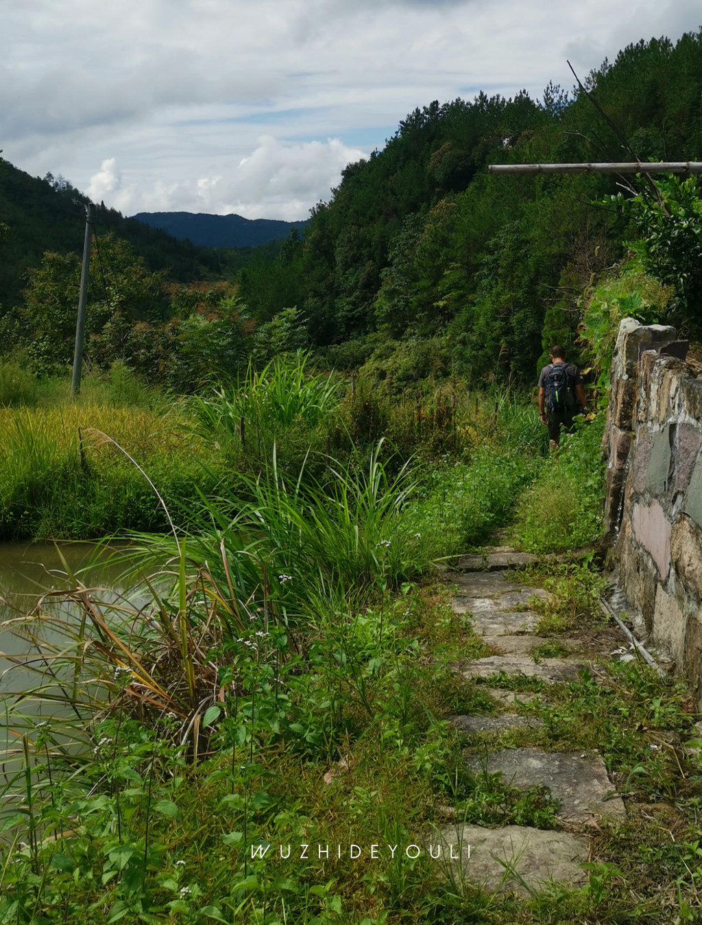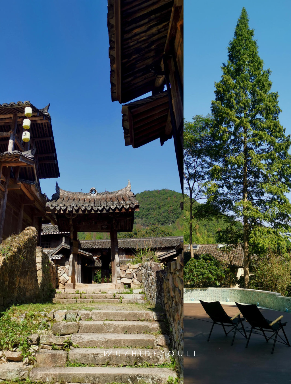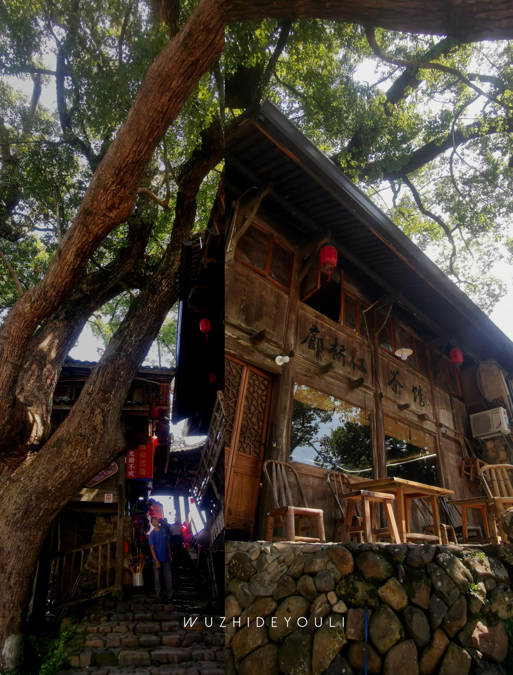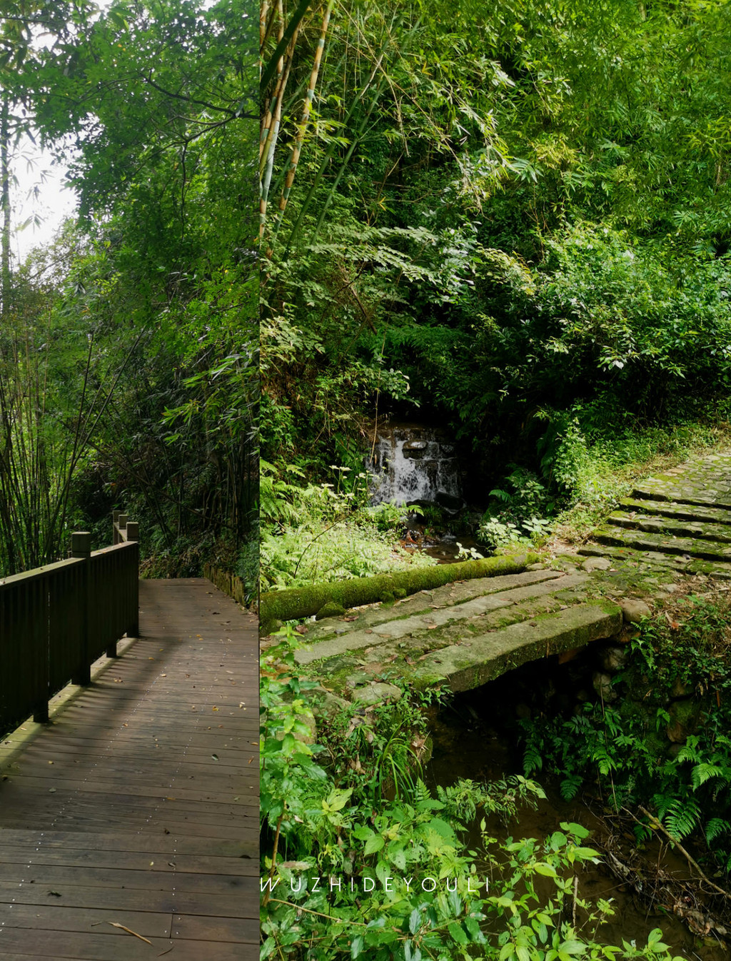 下山时沿着木栈道走到三折瀑,虽没有百丈漈的壮观,但胜在幽静,来往的小路上青绿色的石块,潺潺的溪水,瞬间忘却世间烦恼。恍惚间竟分不清,是在哪个时空,还是时光借古村的躯体,轻轻打了个盹。