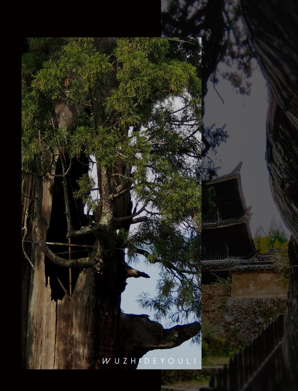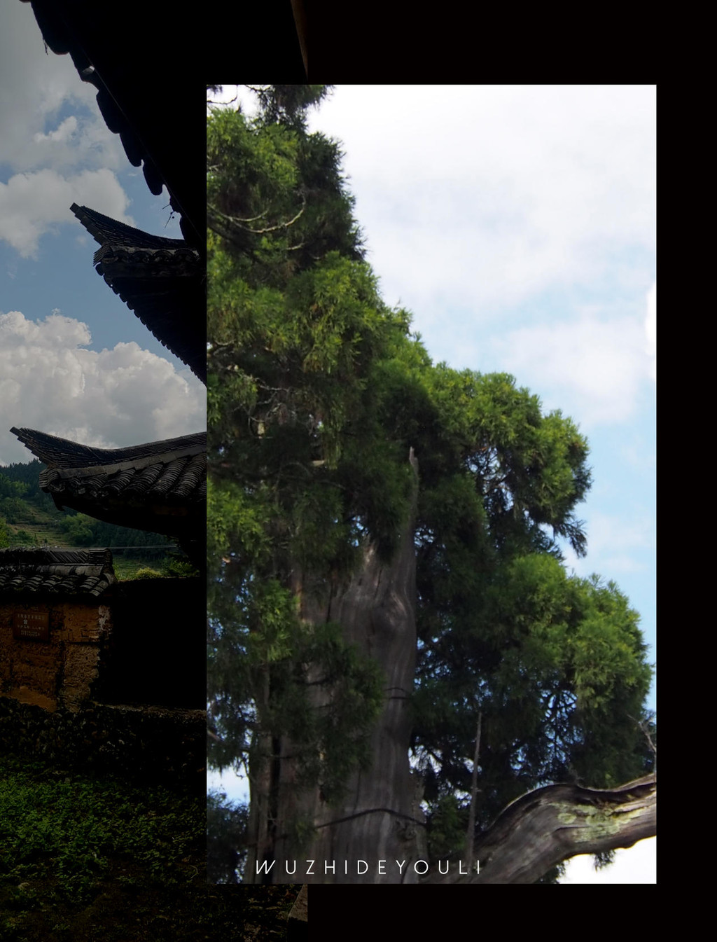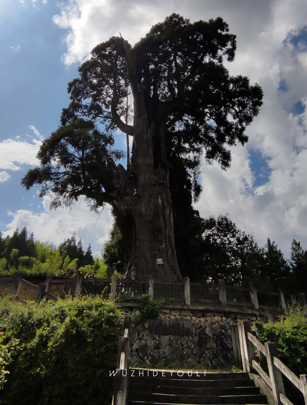 看罢木桥,迎面就是一棵参天古树,虬曲的枝干,树皮皴裂得像百岁老人脸上的沟壑。