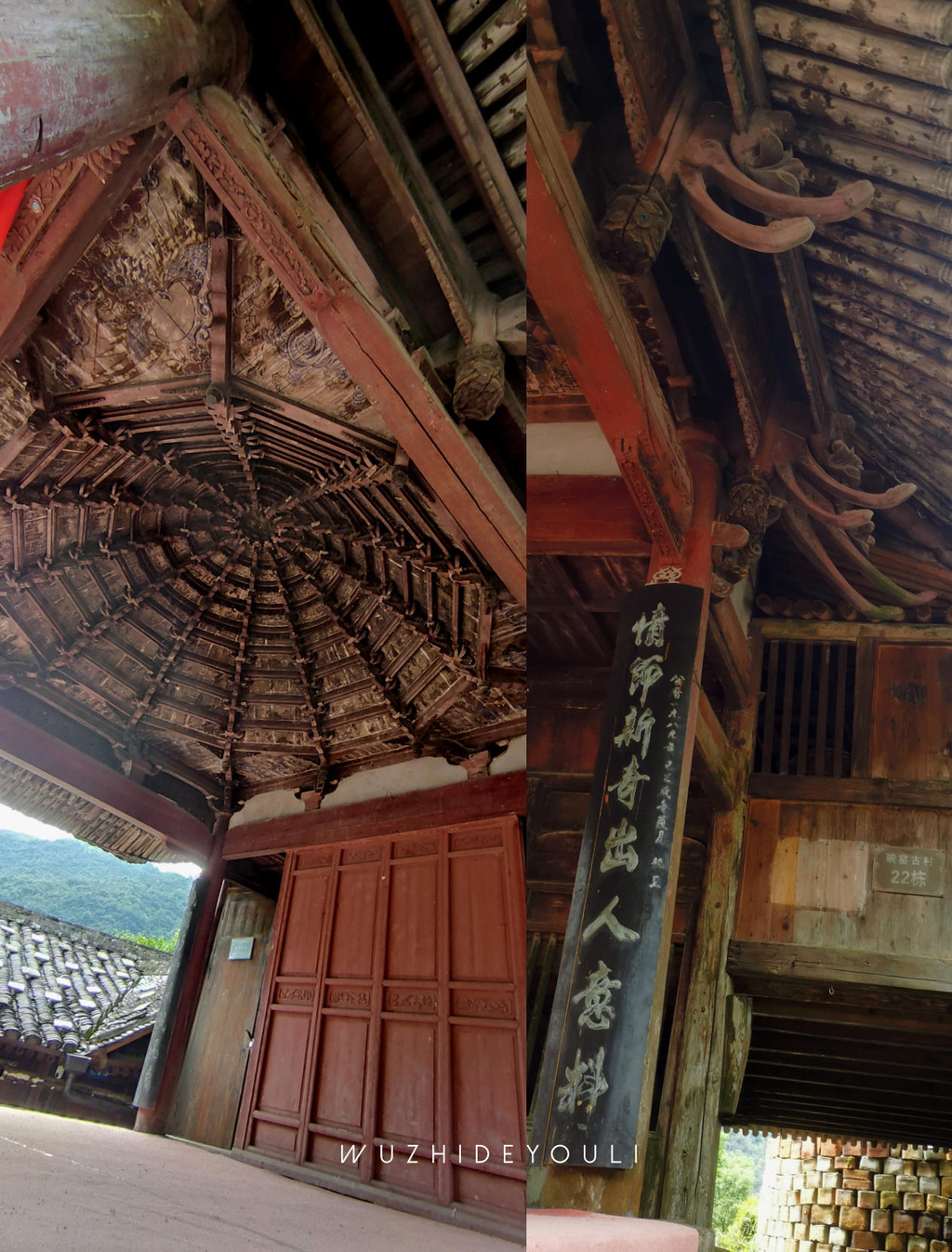 清晨依然被鸡鸭叫醒,今天可是有任务的。驱车2小时的山路到达云中大漈,途中景宁的畲族田园风光非常漂亮。沿着山间溪水和弯弯的步道走进村中,走了一会儿看到一座木结构古廊桥叫护关桥,后来研究后才知道这是三层三檐二孔的简支木平梁廊桥,当时只感觉这桥适合炎热的夏天乘凉。桥中竟然还供奉着关公和魁星,这可是个重视教育的村子。