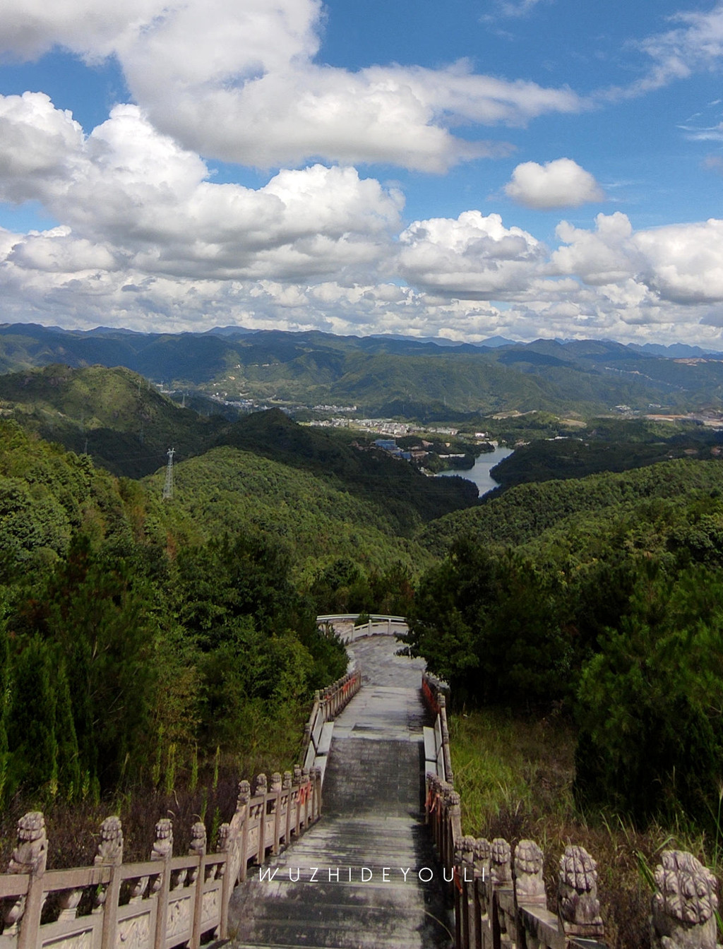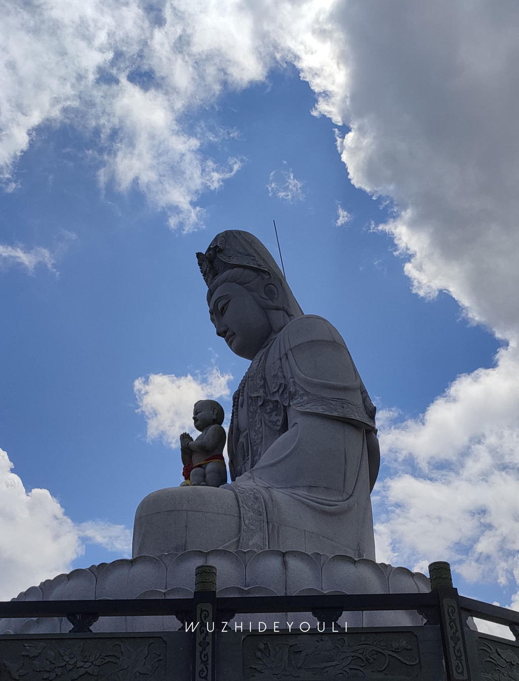寺庙的后山上有一个观景平台,观音塑像跌坐正中俯视着群山和众生。此处也是眺望整个山谷的最佳位置。