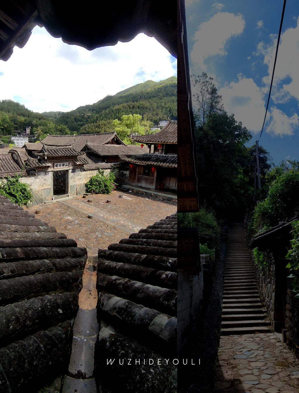 走出时思寺去看云中大漈,大漈是瀑布的意思,走不多远经过一座廊桥,沿台阶拾级而上看到了所谓的云中大漈,可能是时思寺的余温未尽,看到大漈心中并没有太大波澜。回程的路上一直惦记着时思寺的氛围,那推门看到的荒草间斑驳的记忆挥之不去。