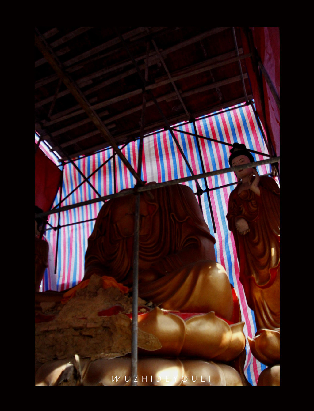 村后山上竟然还有个正在修缮的小庙,职业病驱使下走进去想看看热闹,木结构的梁柱正在翻新,和大和尚攀谈起来竟然也是个旅者,他自豪的给我们讲起他骑摩托穿越藏区的经历,不知不觉聊到太阳西斜。