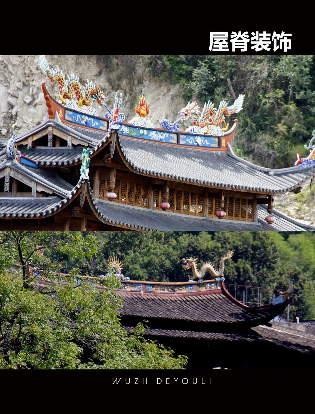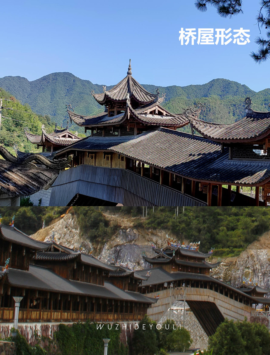 飞檐翘角;屋脊装饰;桥屋形态都有很高的可看性。