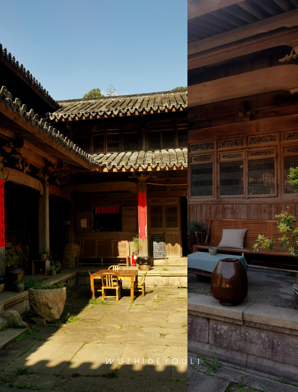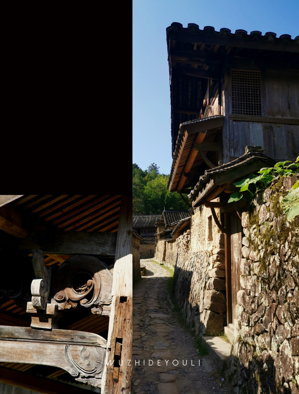踏着石子路在村里看了祠堂、忠训庙、红粬工坊、文元院、举人府,这里的民居主要以土木结构建造为主,青瓦砖墙不事雕琢,屋檐翘挑,飘洒灵动;许多构造延用宋式做法,门楼木质抱鼓石,稍饰雕刻,纹样清晰;多处民居门楼外竖旗杆石,风格古朴大方。