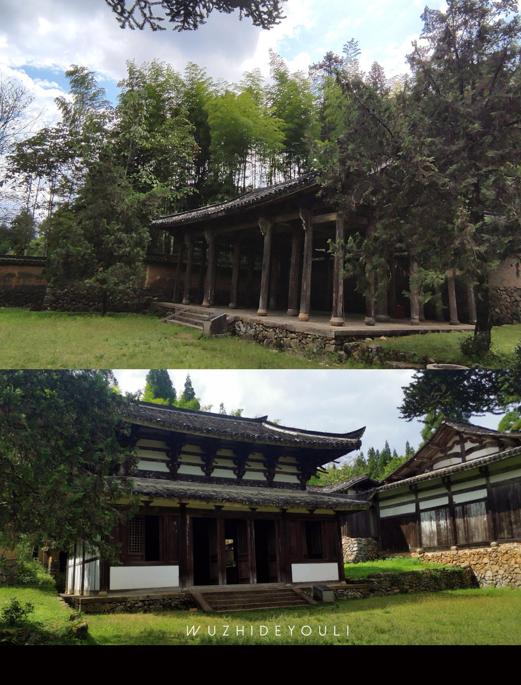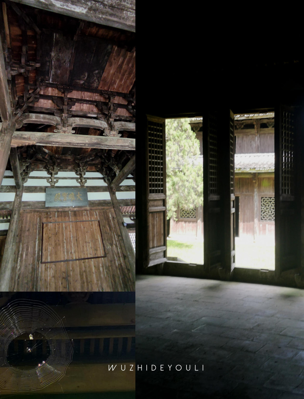 冥冥之中感觉这个地方不简单,园中景象虽然有些荒凉,从山门、钟楼、大殿、三清殿的设置上不难看出原有的建筑规制是个祠堂。大殿的门虚掩着,推开时发出 “吱呀” 的呻吟,门槛上积着厚厚的灰尘,留有几个模糊的脚印,像是不久前有人来过。三清殿只剩建筑的骨架,阳光透过梁柱斜斜照进来,在青砖地上投下细碎的光斑。走到后面,果然发现这是梅氏家族的祀庙,时思寺是时时思念的意思。
