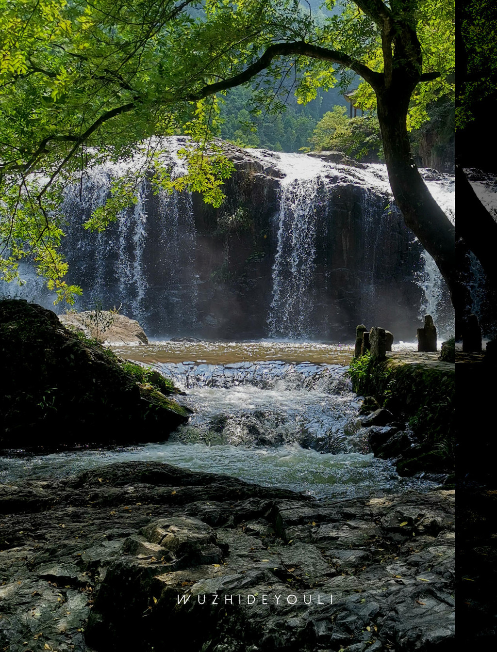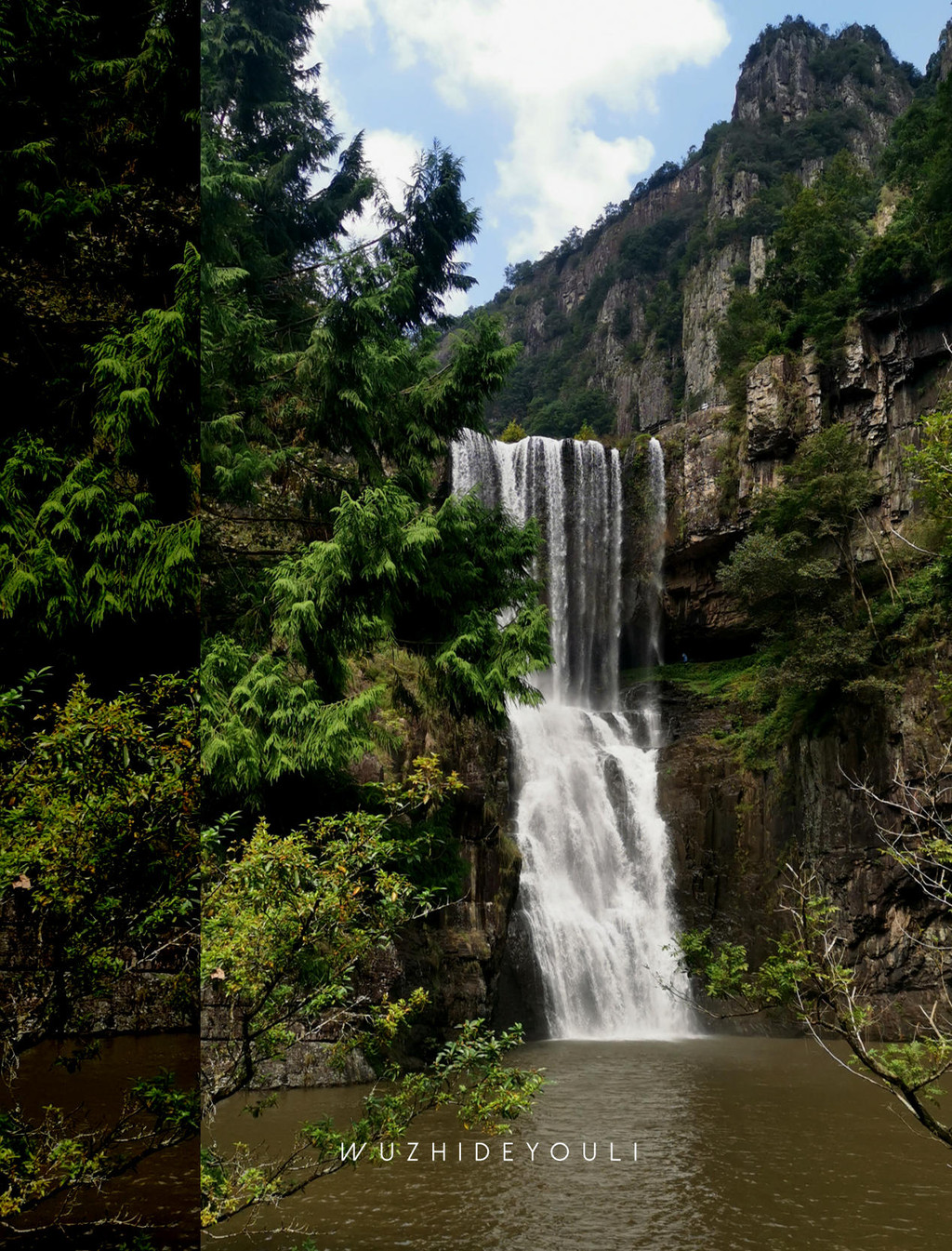 水雾漫过目光时,竟觉恍惚,许是沾染了此间修行千年的灵韵。此时才明白进山时看到的几个汉服打扮小姐姐的明智。穿着汉服张开双臂,任水雾漫过衣襟,这样的飞瀑峡谷中面山而立,怎一个帅字了得。