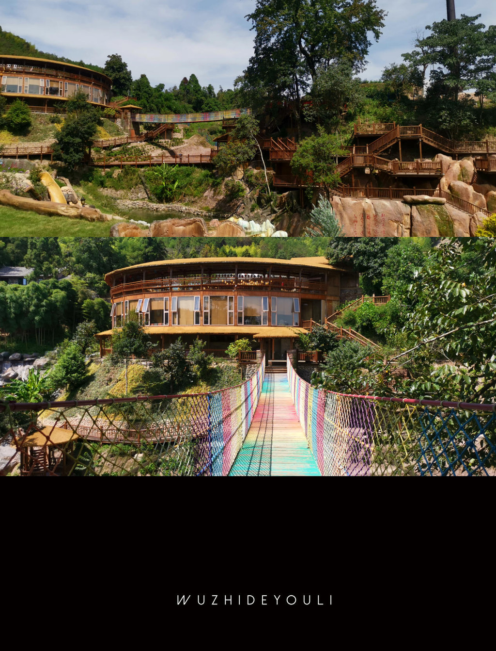 彩虹吊桥:微风吹过,吊桥轻轻晃动,站在桥上,远处山峦起伏,近处花海绚烂,能拍出很美的照片。
