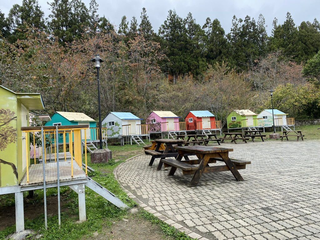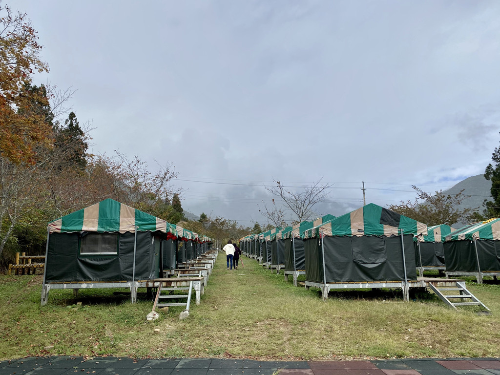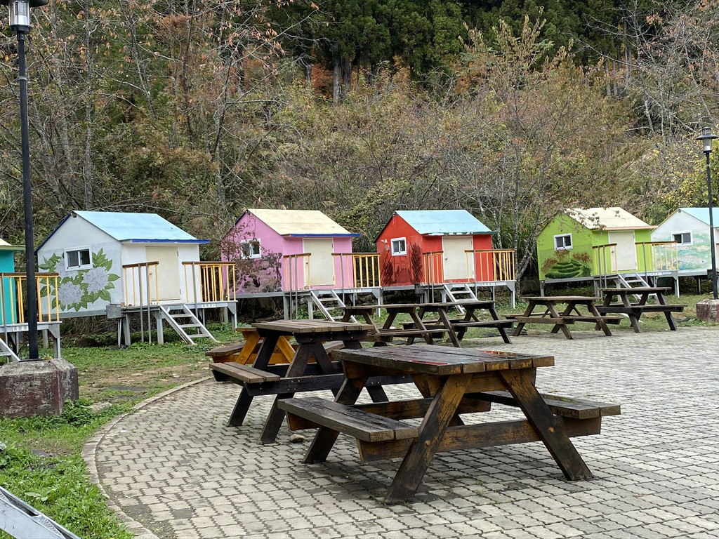 我們再繼續前行來到武陵的露營區,如果沒能訂到賓館或山莊,露營區也是一個很好的體驗,這兒的露營區有繽紛色彩的露營小木屋、空中帳篷(懶人露營的好選擇,不用自行搭帳),還有提供自搭帳篷的汽車棧板區,視個人喜好選擇,但是在旺季如櫻花季,這個露營區也是一位難求。這裏的露營屋內部是沒有提供衛浴,要到公共衛浴。管理中心有提供男女浴廁,也有2台冰箱,還有2台洗衣機,也有提供飲水設備。如果不想炊事,管理中心也有賣泡麵、零食、醬菜等食物,也有賣一些熱食,怕冷的話也有電毯可以租借。所以是蠻方便的。