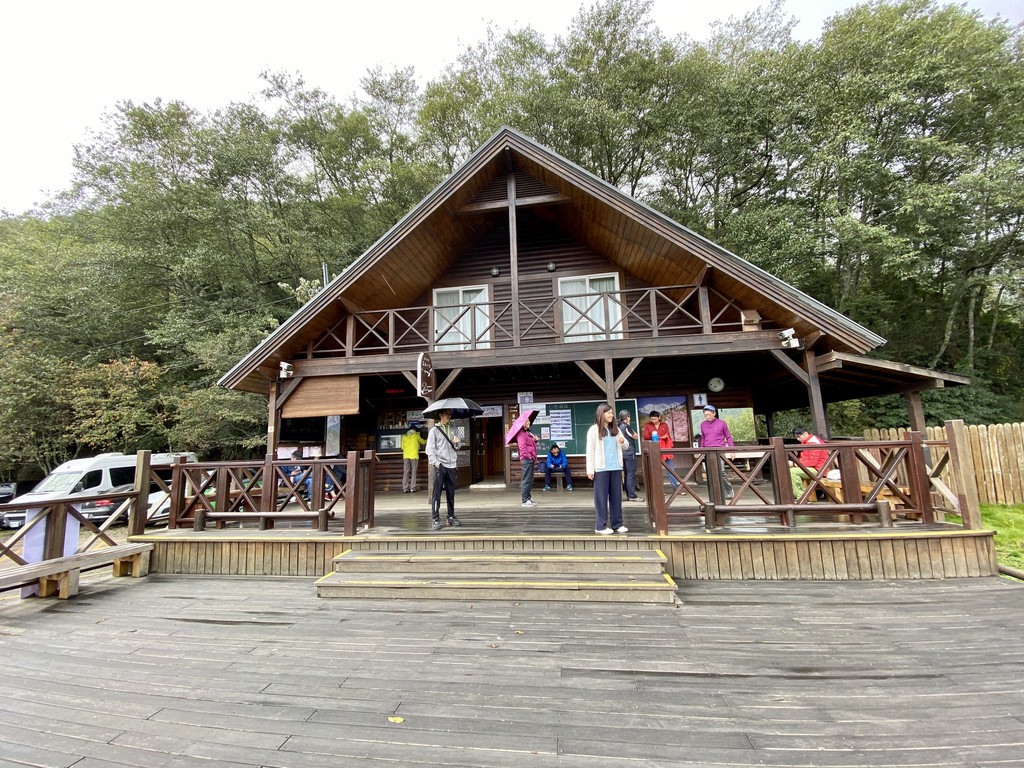 雪霸國家公園武陵遊客中心提供餐飲 門前也有一片萬壽菊花海