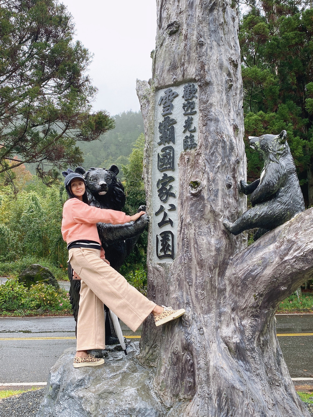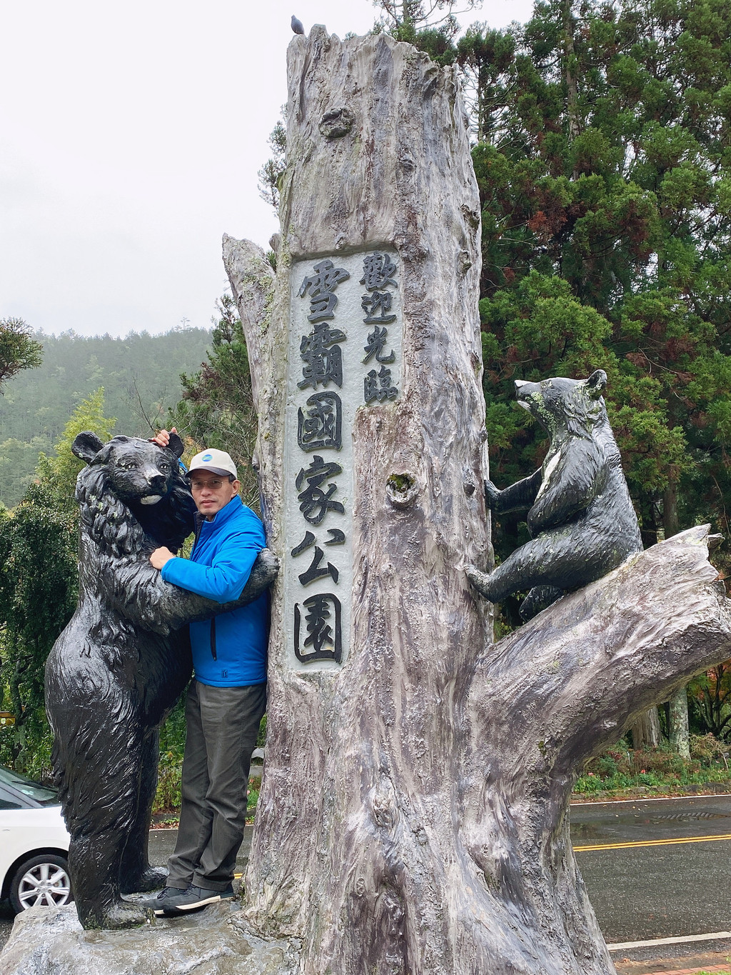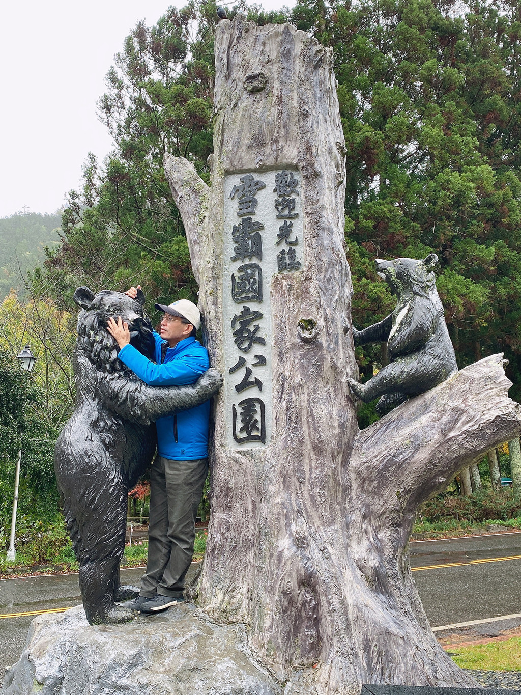 武陵農場的位置其實位於雪國家公園內,所以也是雪霸國家公園的一部份,而台灣熊則是雪霸國家公園復育的代表性動物之一,所以在武陵農場的遊客中心前可看到台灣黑熊學爬樹的裝置藝術。旁邊解說牌上寫著,斷掌小熊小乖在西元1994年僅出生二個月時,在台中市和平區山區遭違法獵補,事後獵人被移送法辦,小乖則因為無法適應野外生活,由特有生物研究保育中心永久豢養。這已經是26年前的事了。