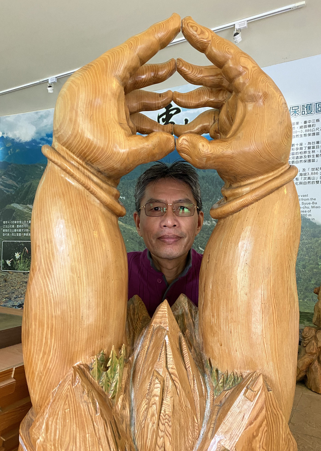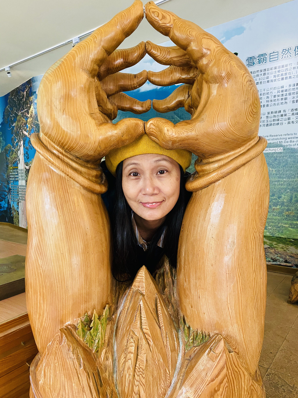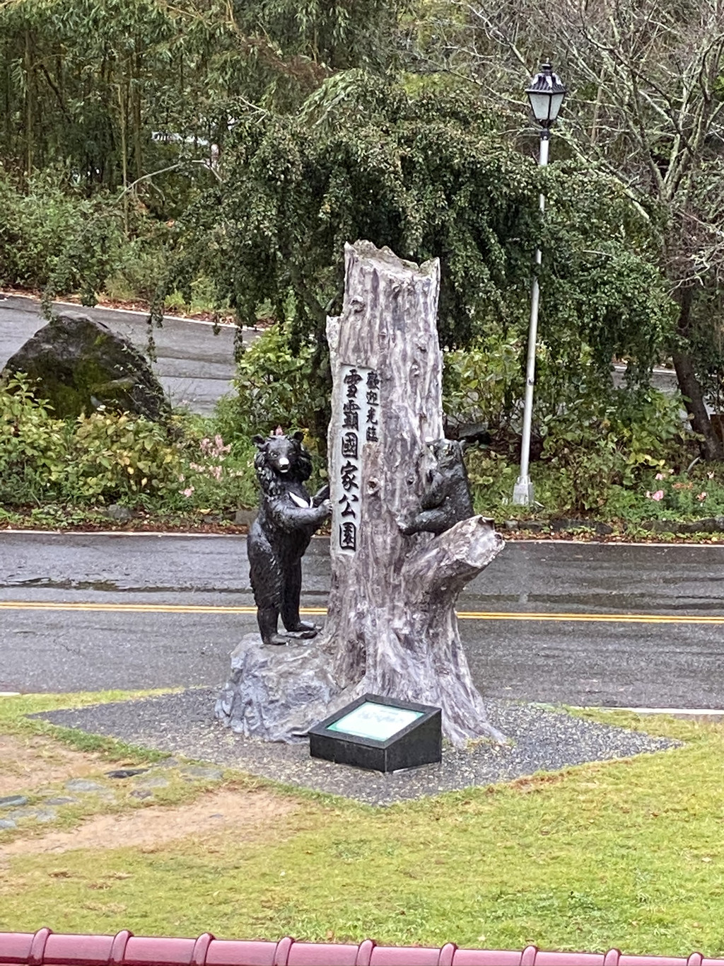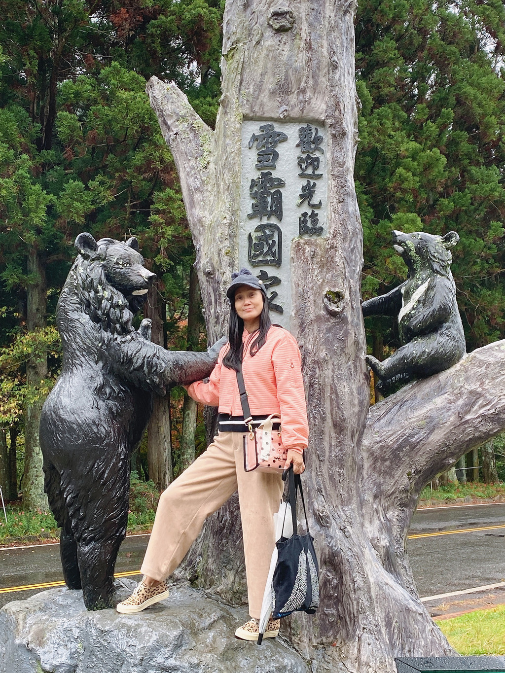 武陵農場的位置其實位於雪國家公園內,所以也是雪霸國家公園的一部份,而台灣熊則是雪霸國家公園復育的代表性動物之一,所以在武陵農場的遊客中心前可看到台灣黑熊學爬樹的裝置藝術。旁邊解說牌上寫著,斷掌小熊小乖在西元1994年僅出生二個月時,在台中市和平區山區遭違法獵補,事後獵人被移送法辦,小乖則因為無法適應野外生活,由特有生物研究保育中心永久豢養。這已經是26年前的事了。