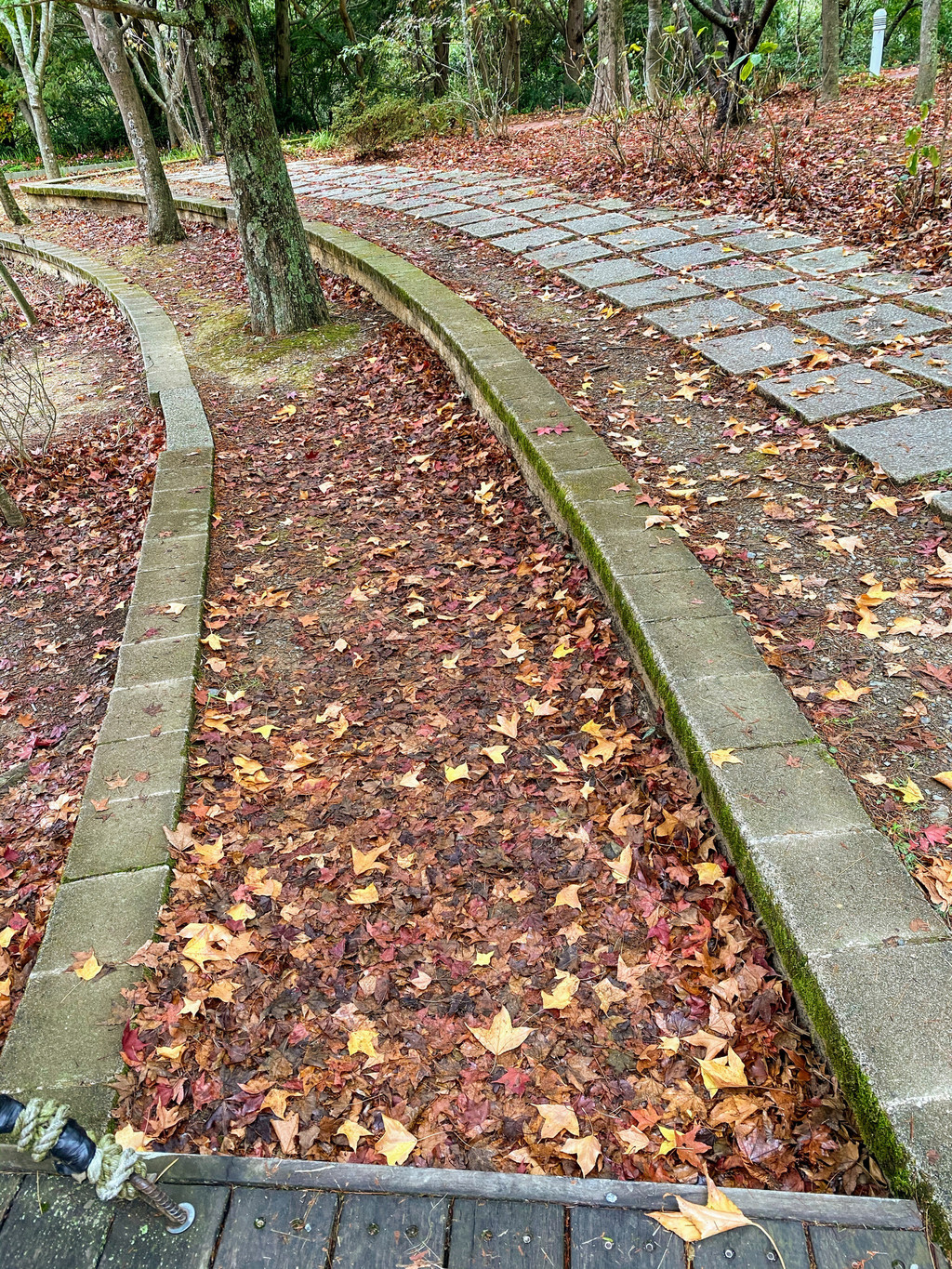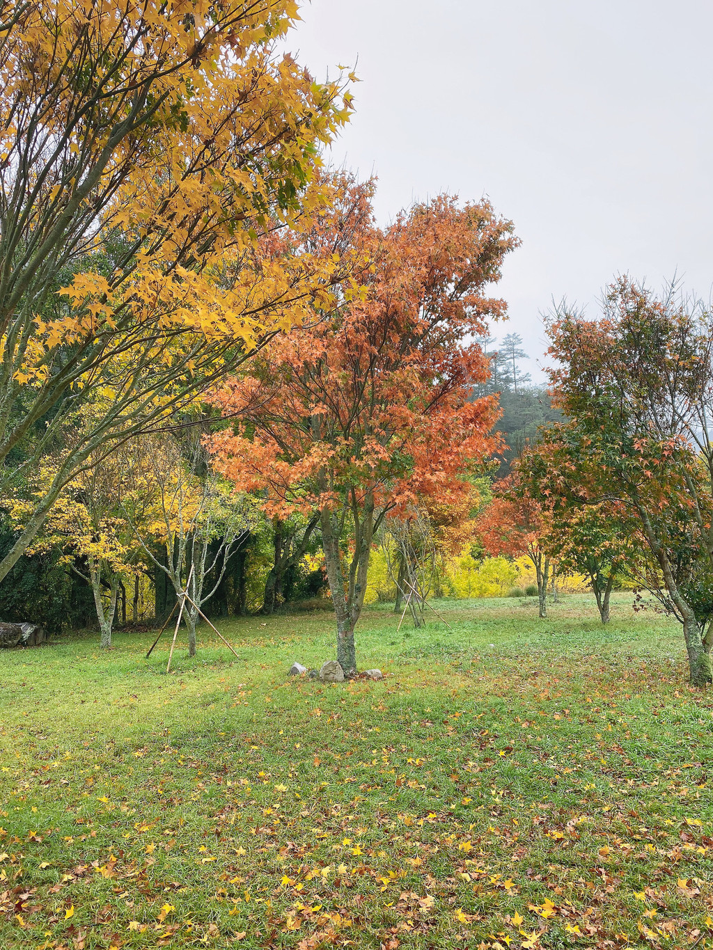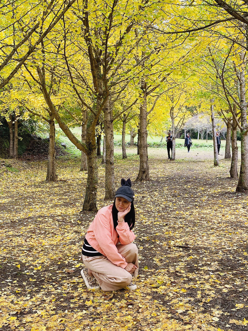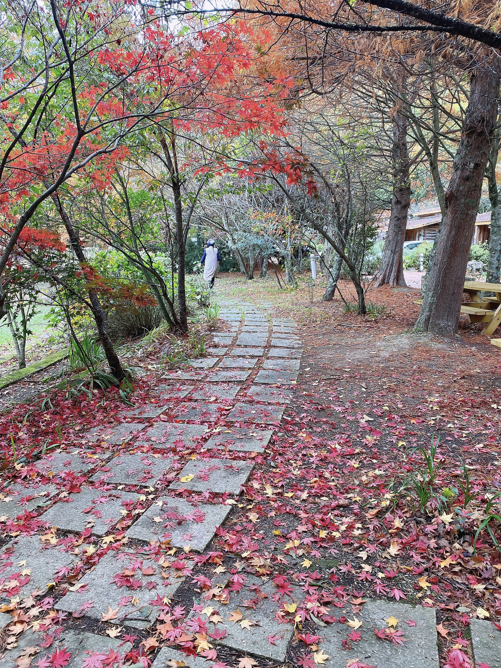 我們就隨意逛逛,我們此行的目的是要來拍紅葉及銀杏、落羽松。花園廣場的後方是一片銀杏林秘境,銀杏的綠葉在入秋後如漸轉色為金黃色一片,地上都是滿滿的銀杏葉,綻放金黄世界,非常美麗的畫面。再過去就是一片楓葉林、落羽松,紅色、黃色、橘色、綠色,顏色鮮艷繽紛,秋天的美麗神話。