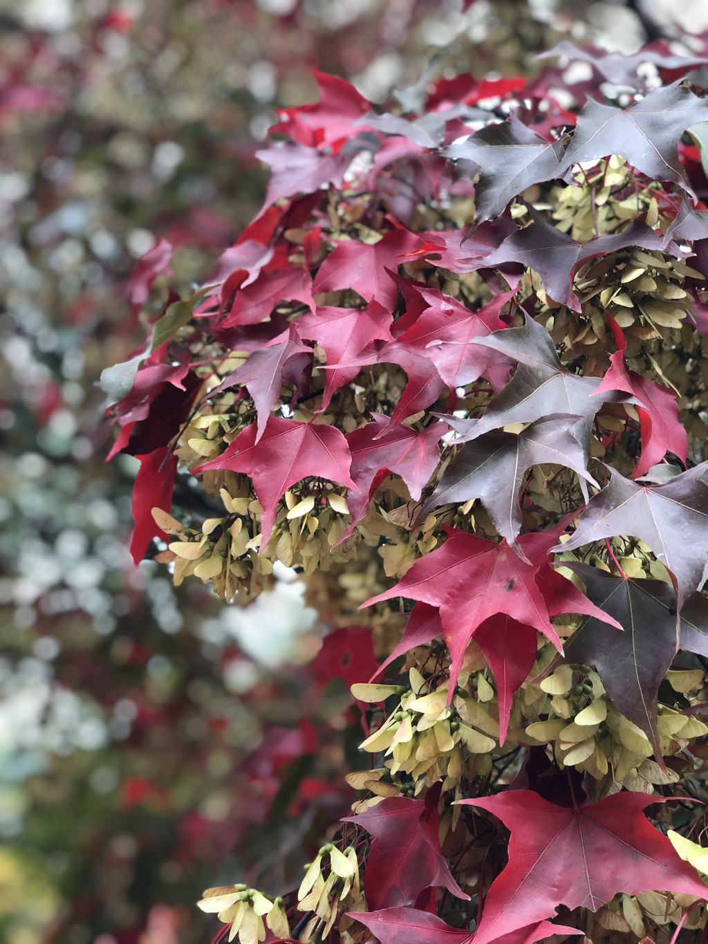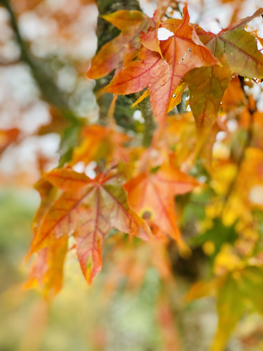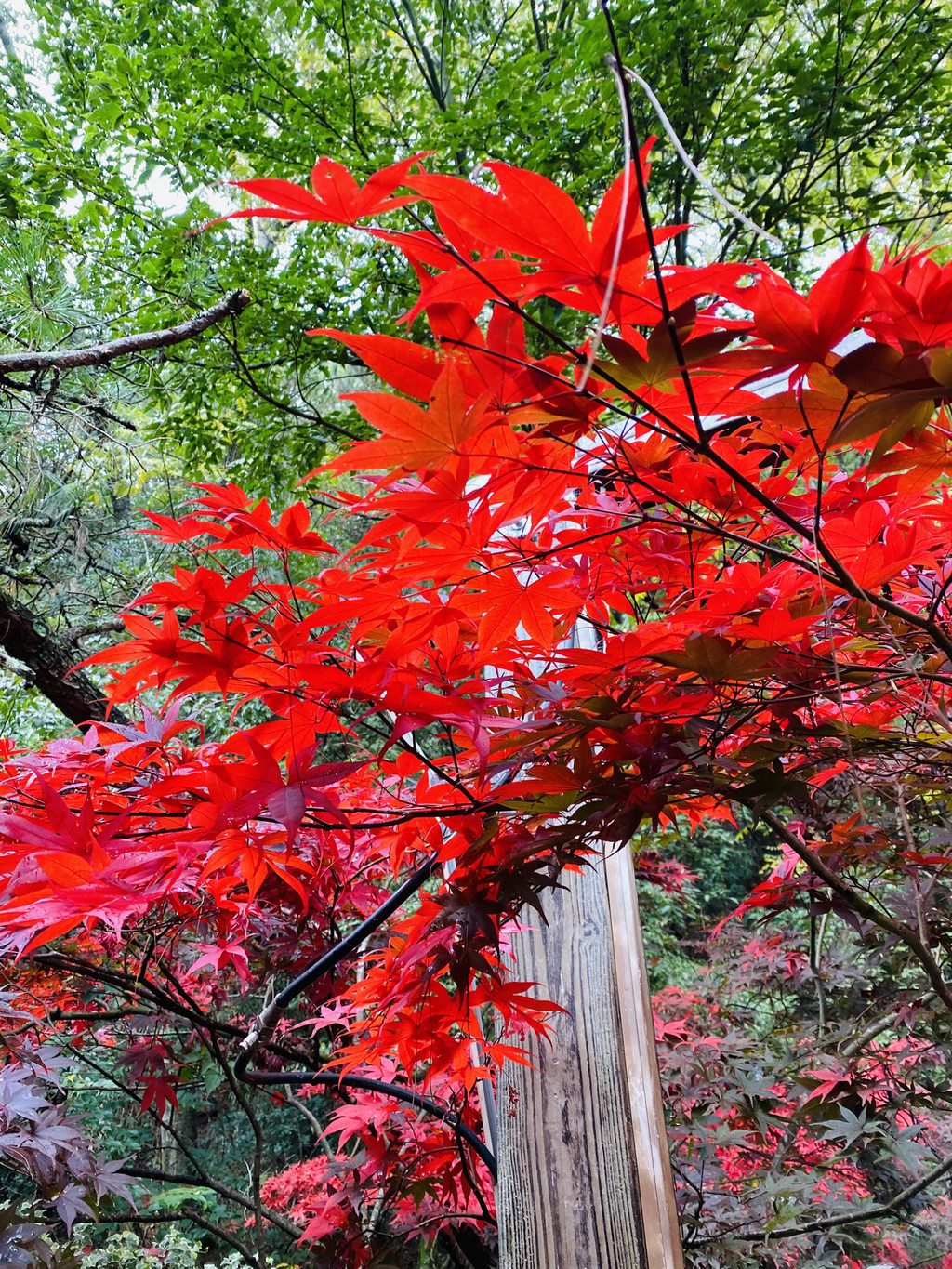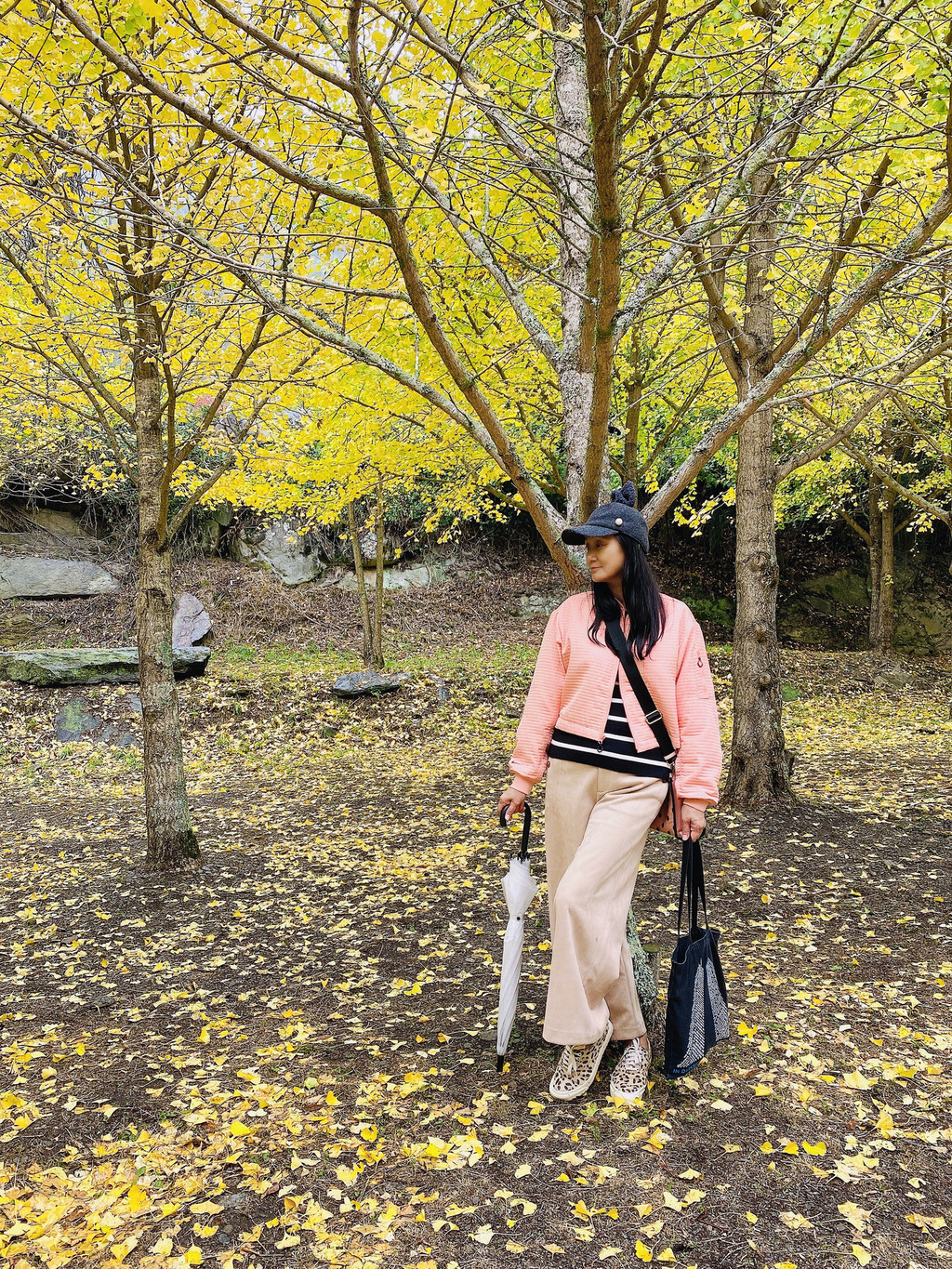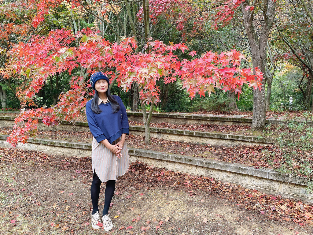我們就隨意逛逛,我們此行的目的是要來拍紅葉及銀杏、落羽松。花園廣場的後方是一片銀杏林秘境,銀杏的綠葉在入秋後如漸轉色為金黃色一片,地上都是滿滿的銀杏葉,綻放金黄世界,非常美麗的畫面。再過去就是一片楓葉林、落羽松,紅色、黃色、橘色、綠色,顏色鮮艷繽紛,秋天的美麗神話。
