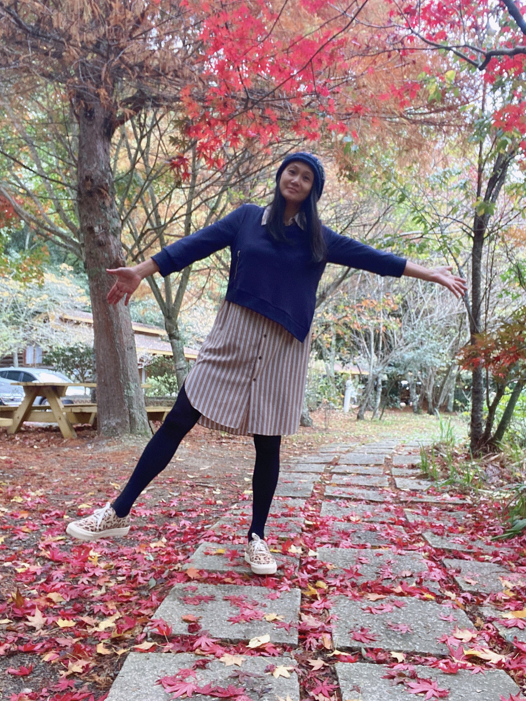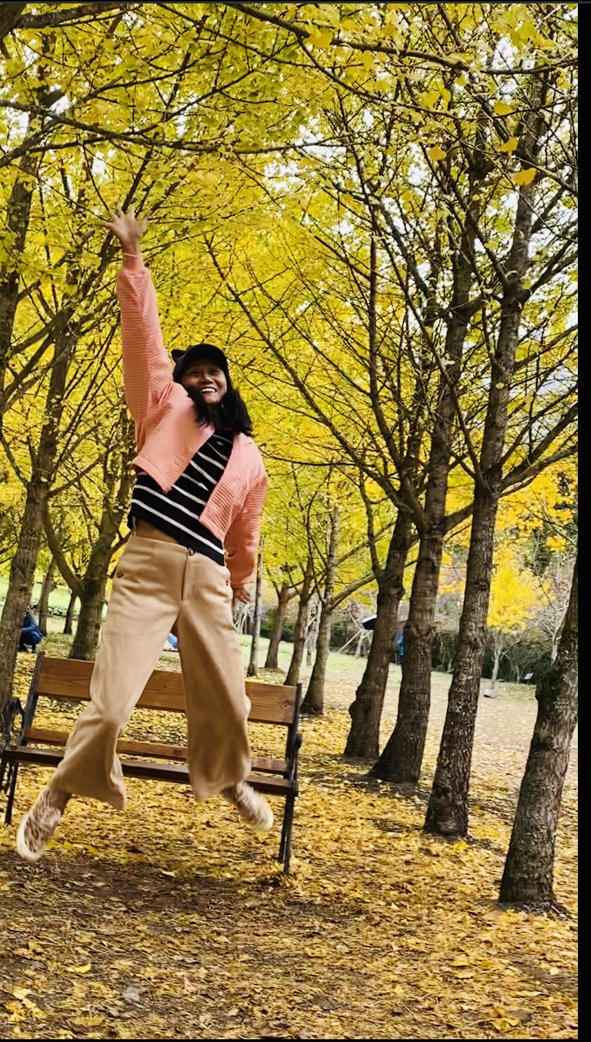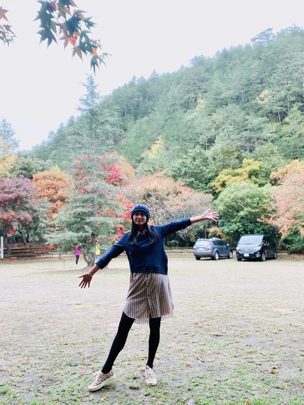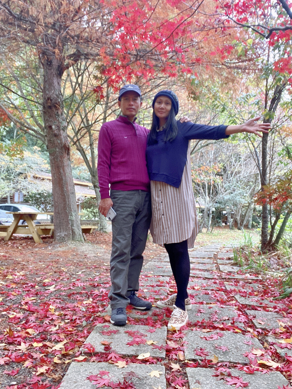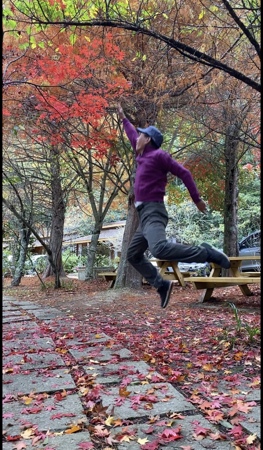 一夜的好眠,第二天想要避開人群再去楓林木屋旁的紅葉廣場拍些美照,因為賓館後面廣場紅葉林是武陵紅葉的盛地,景色非常的漂亮,所以想利用早餐前的空閒先去拍照。沒想到才7點,人還真不少,原來住在這裏的遊客都有同樣的想法,但比起平時盛況還是少一些人,也比較好取景。在這裏真的是怎麼拍怎麼的美。所以來到武陵旅遊最好是能住上一晚。我們在邊緣找到一處沒什麼遊客集中在拍照的地方,拍照很美,算是我們的秘境,我們拍的超開心,還可以玩跳躍。
