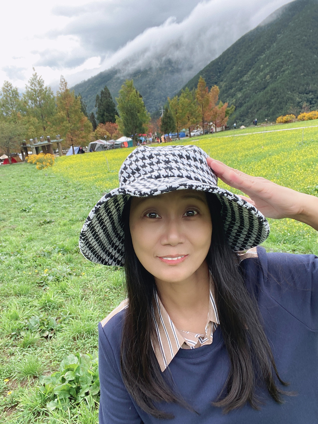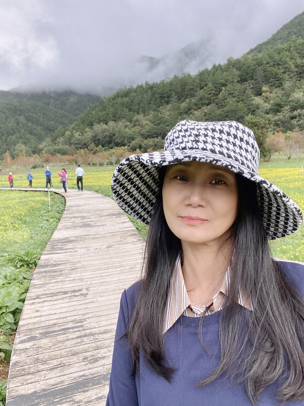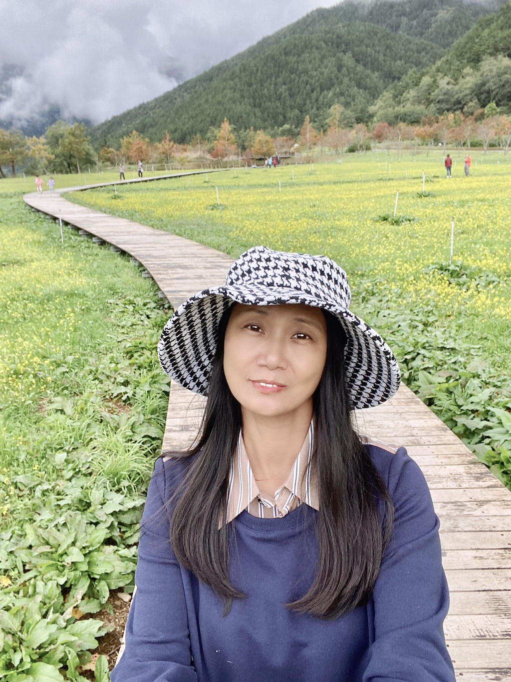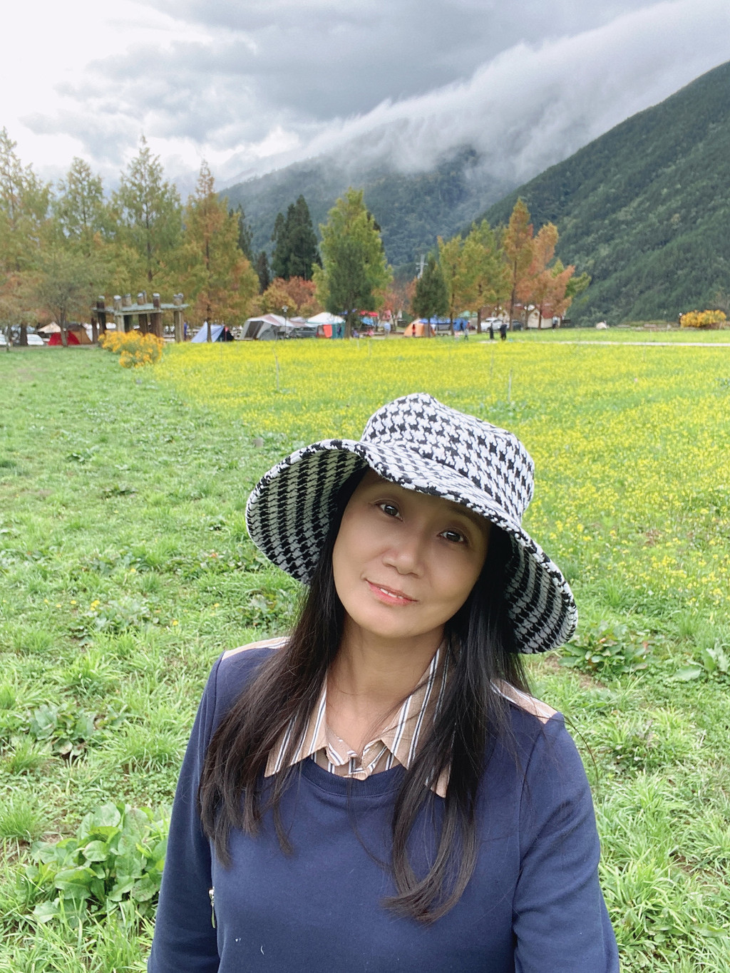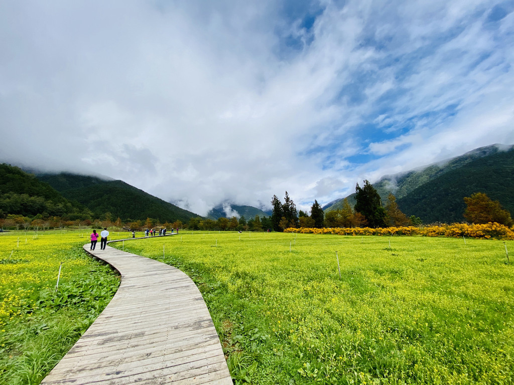 下一站我們來到了花海區,這是在露營區的後方,這是一大片的油菜花田,不過現在還不算是油菜花盛開的季節,所以還沒有黃澄澄的金黃色花海,但一片綠再點綴些許的金黃,搭配一旁雲霧渺渺的山巒及變色的落羽松,也是一片美景。