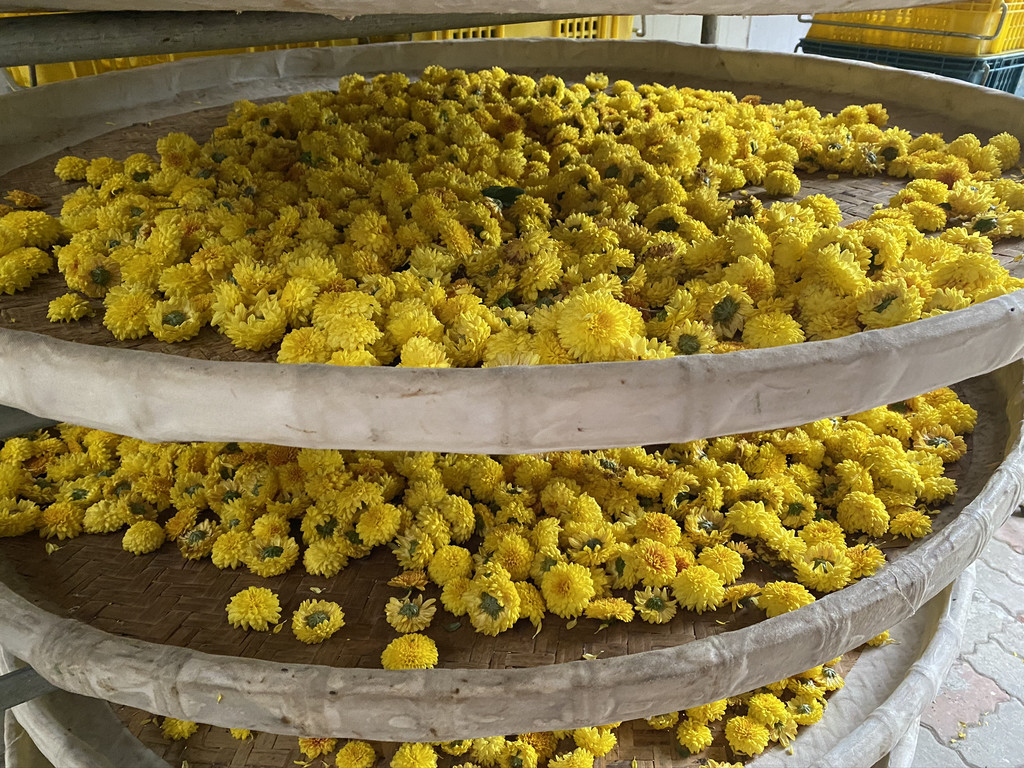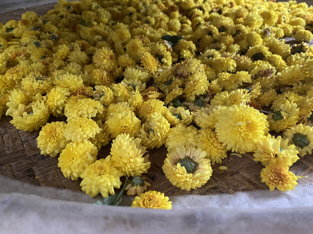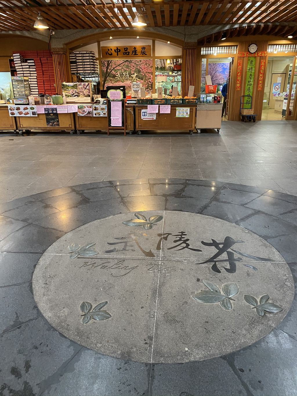 從遊客中心走到武陵茶莊的路程0.55公里。武陵茶莊是販賣武陵農特產品及茗品茶所,遊客可以在這裏買到武陵農場生產的相關產品,像是武陵自行生產的茶葉(紅茶、金萱茶、烏龍茶等),醃白菜系列,還有水果、蘋果脆片、脫水高麗菜等產品。我在武陵茶莊有看到武陵杭菊烘焙的過程,也了解到白色的杭菊是顧眼睛,黃色的杭菊是顧肝。武陵高山杭菊是栽種在最單純沒有污染的環境,引用比國寶魚櫻花鈎吻鮭更純淨的雪山泉灌溉,圓球狀花朵既夢幻又療癒。因為武陵溫涼、日夜溫差大,花朵大且花瓣厚,花型完整,耐泡且色澤優,清香中帶高山風味,而且未施用任何化學農藥。 武陵得天獨厚的地理與氣候條件,讓種植於海拔約2000公尺的杭菊極少受病蟲害影響。武陵高山杭菊以自然農法栽培,目前面積約2公頃,經SGS超過300項農藥檢驗皆為零檢出,是極受遊客喜愛的熱銷農產品,黃色杭菊一包50克台幣400元,還有一種是杭菊+紅茶的茶包,一包20小包茶袋台幣350元,這很適合當伴手禮。