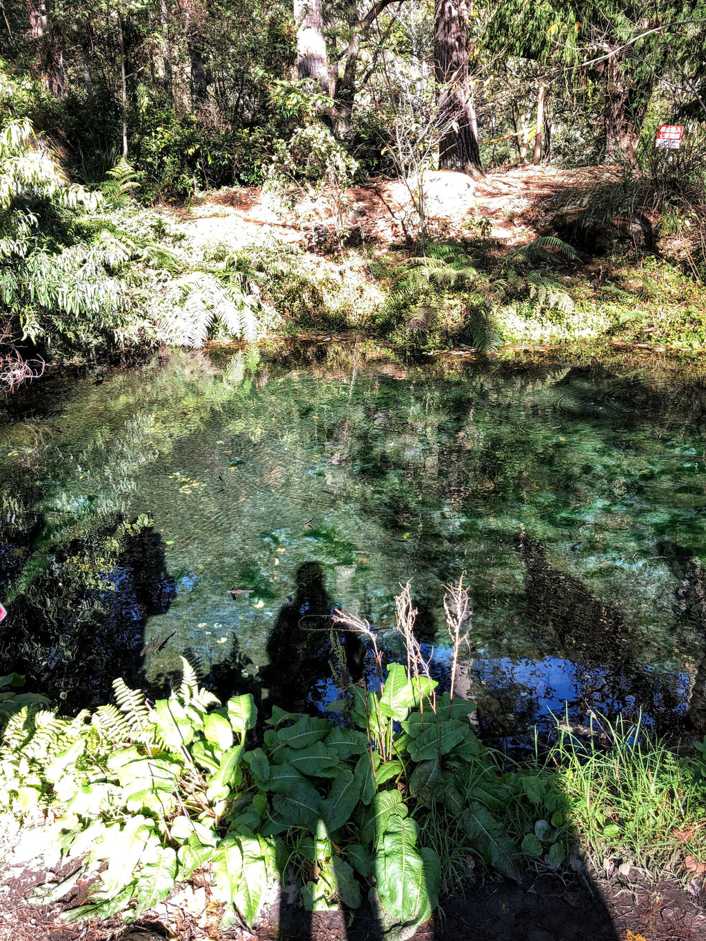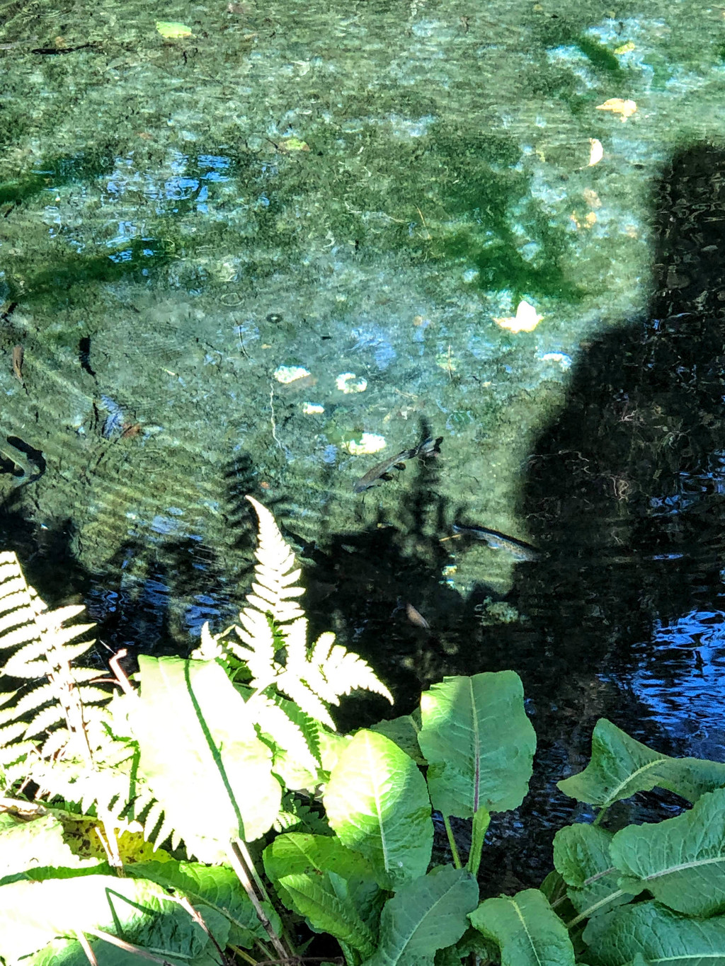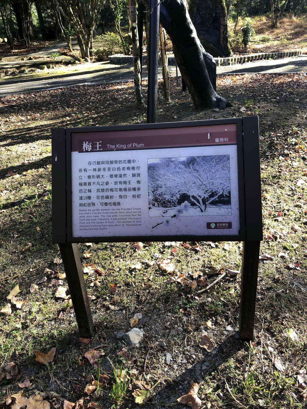 回程我們往武陵農場行政中心方向回去,武陵農場行政中心旁有一座溫室花房,裏面有季節性的花朵。再過去會看到蔣公銅像,其旁樹林間有一間石砌的一樓平房,就是武陵農場蔣公行館。行館前的庭園有早年蔣公及夫人手植的梅花,旁邊有蔣公當年蒞臨農場巡察慰勉榮民的老照片。蔣公夫婦當年巡視時曾入住四次,當年老蔣總統與夫人親手栽植的兩株梅花,稱為梅王與梅后,至今依然枝葉繁茂。行館後方有一座池塘,池塘旁有一條木棧道可通往七家灣溪岸的台灣櫻花鈎吻鮭生態中心,這也是來到武陵農場不能錯過的景點。我去年來到武陵農場遊覽時,導遊有帶我們到生態中心前的小池塘去觀看池裏野生的櫻花鈎吻鮭在池裏悠遊其中。這櫻花鈎吻鮭是日治時代學者大島正滿首先學術發表,而使台灣櫻花鈎吻鮭開始為外界所知曉,進而聞名。
