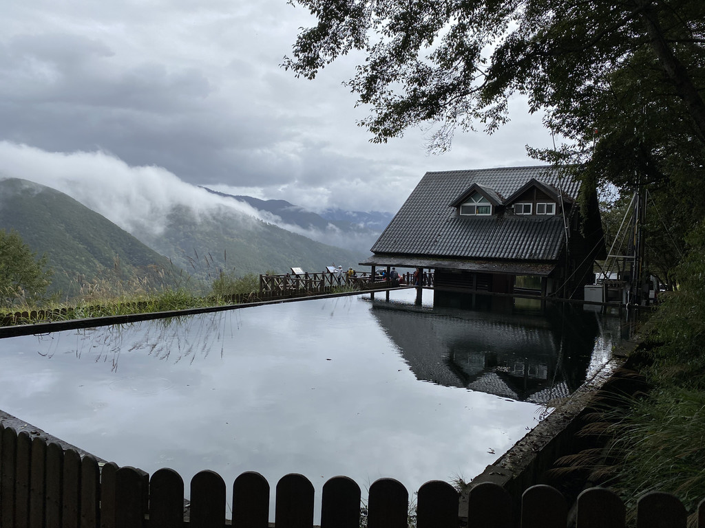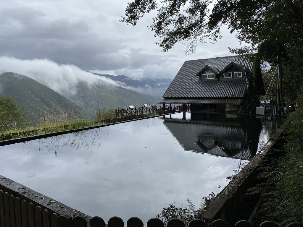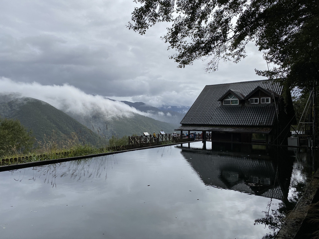 從服務站往左走經由木棧道是通往雪山口的方向,入口有告示牌提醒遊客未經許可請勿擅自進入以免重罰。從服務站旁的蓄水池去拍攝服務站的木屋及山稜線倒影是最熱門的打卡點及拍照點。看過很多遊客拍的照片都好美,彷佛歐洲風情畫,只可惜今天天色不佳,拍不出平靜水面下清澈的天空、白雲、小木屋的倒影, 覺得有點婉惜。