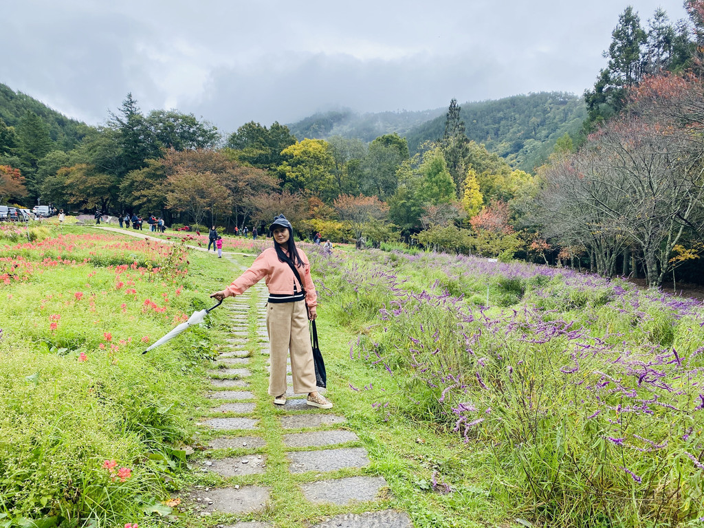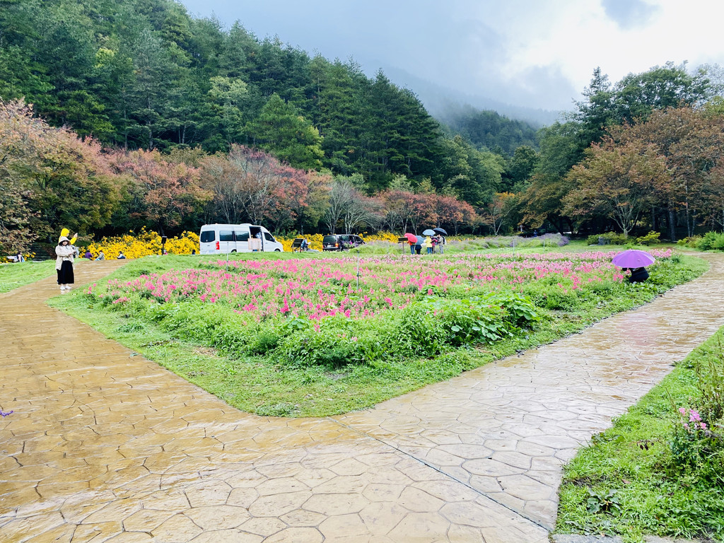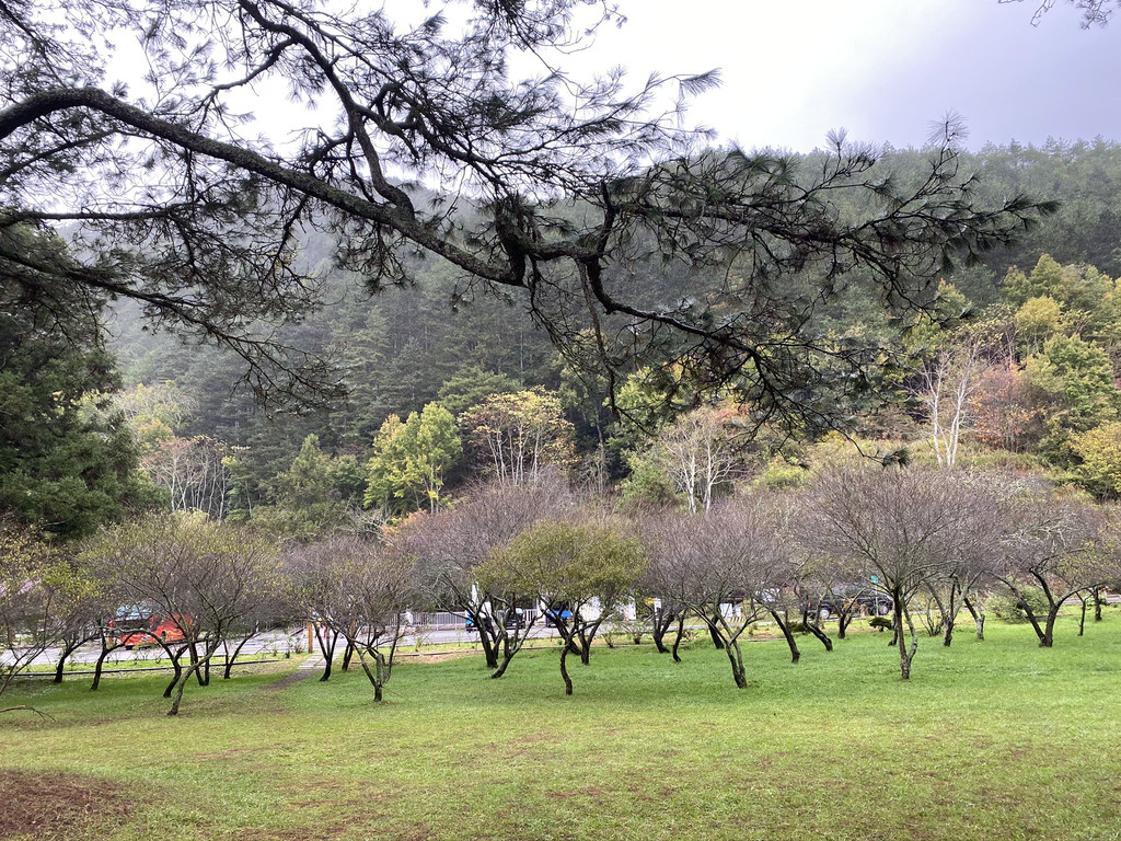 還好到了武陵農場雨勢已漸停,但還是偶爾的毛毛雨,突然一陣子又稍大需要撐傘,但不影響拍照的興緻。